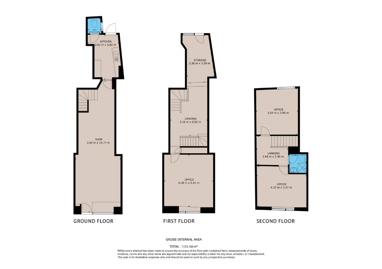 Spanning three floors, the accommodation is both flexible and well-proportioned, making it ideal for retail, office, or mixed use purposes.