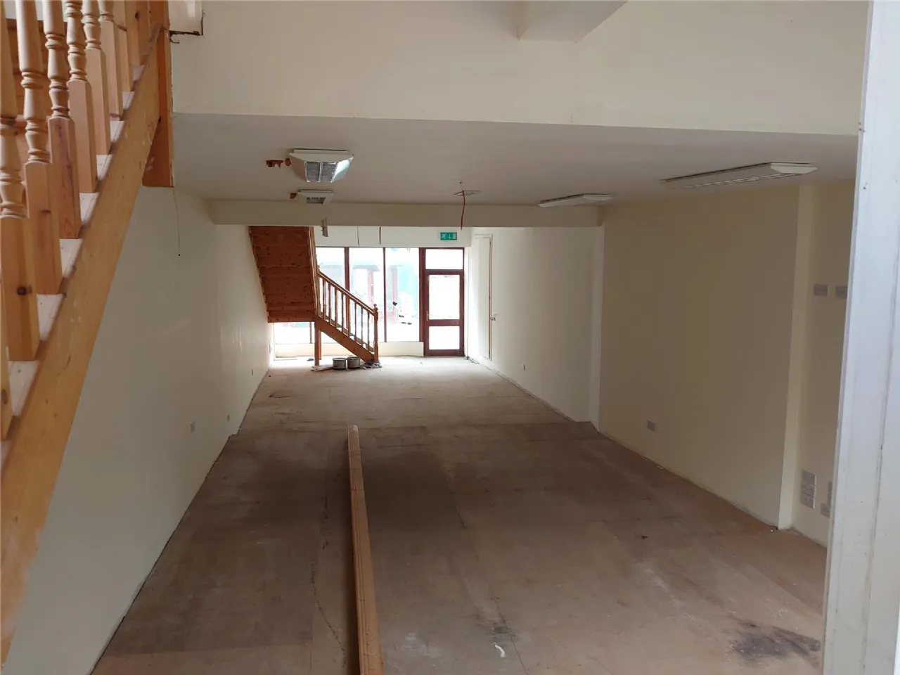 Retail Unit 4.86m x 8.54m Stairs to first floor, split level floor, tv and telephone points, windows to front and rear.