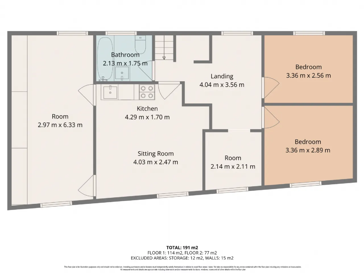 Living Space 6m x 5.5m Currently divided into 4 rooms.