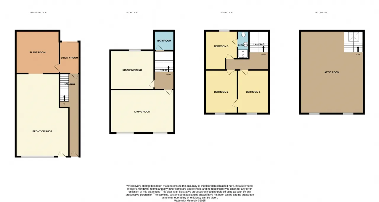 Separate Overhead 3 bed residential accom 1,670 sq ft approx over 3 floors.
