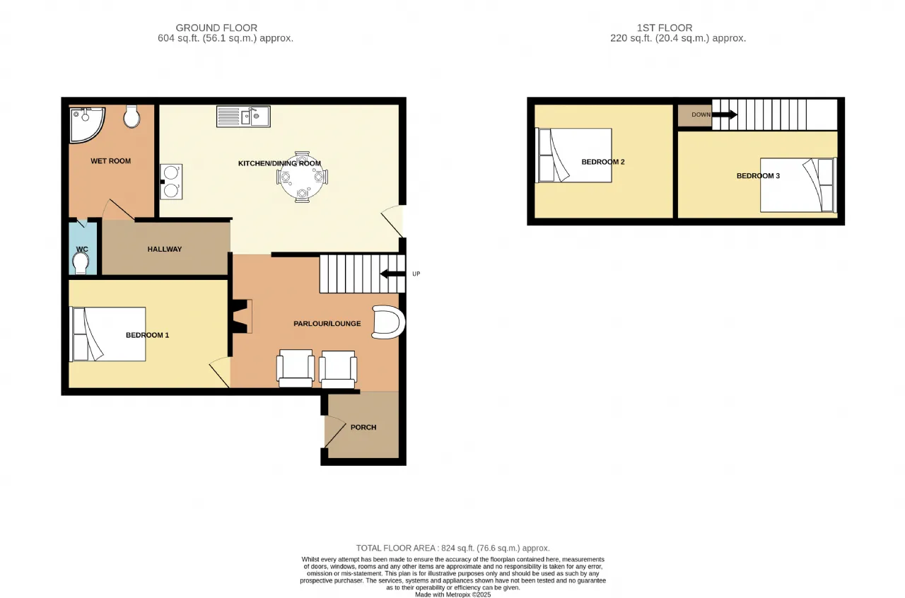 Guest W.C. 0.834m x 1.532m Toilet and sink. Tiled floor and walls.