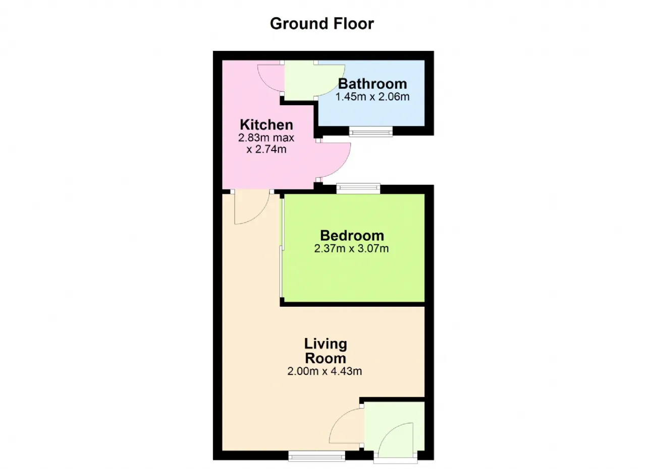 Living Room 2.00m x 4.43m Laminate flooring, double glazed sash window to front, attic access, radiator, Door to;