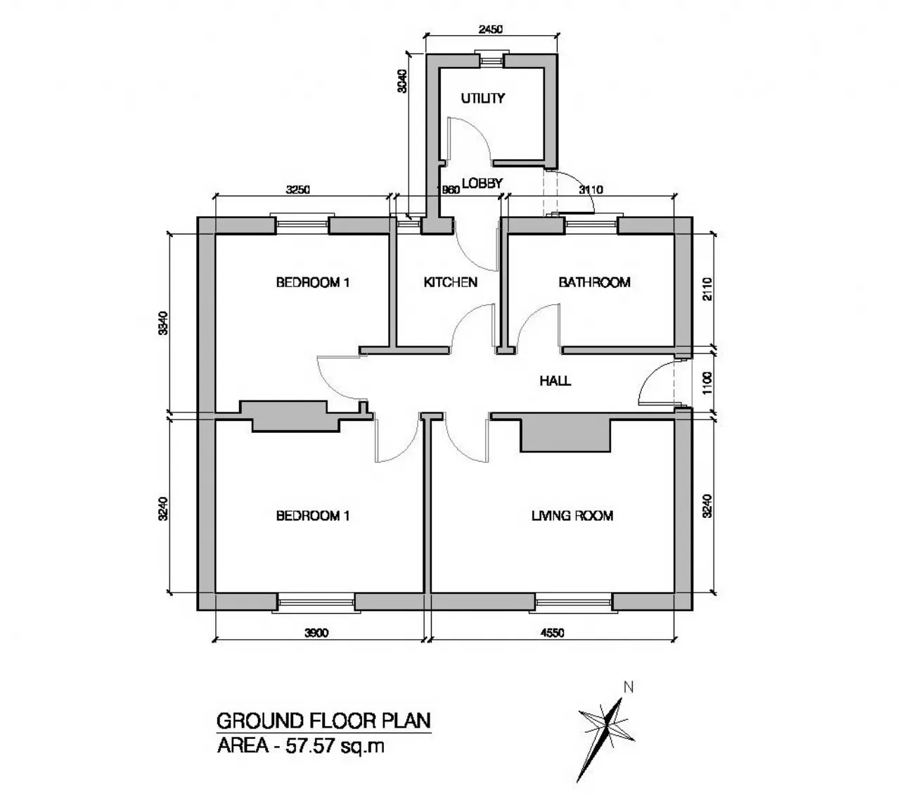 Accommodation comprises an entrance hallway, a sitting room, a kitchen, a utility room, two bedrooms and a bathroom.