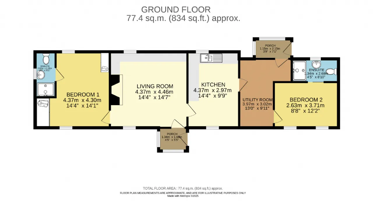 Front Porch 1.34m x 1.66m Double glazed windows and front door