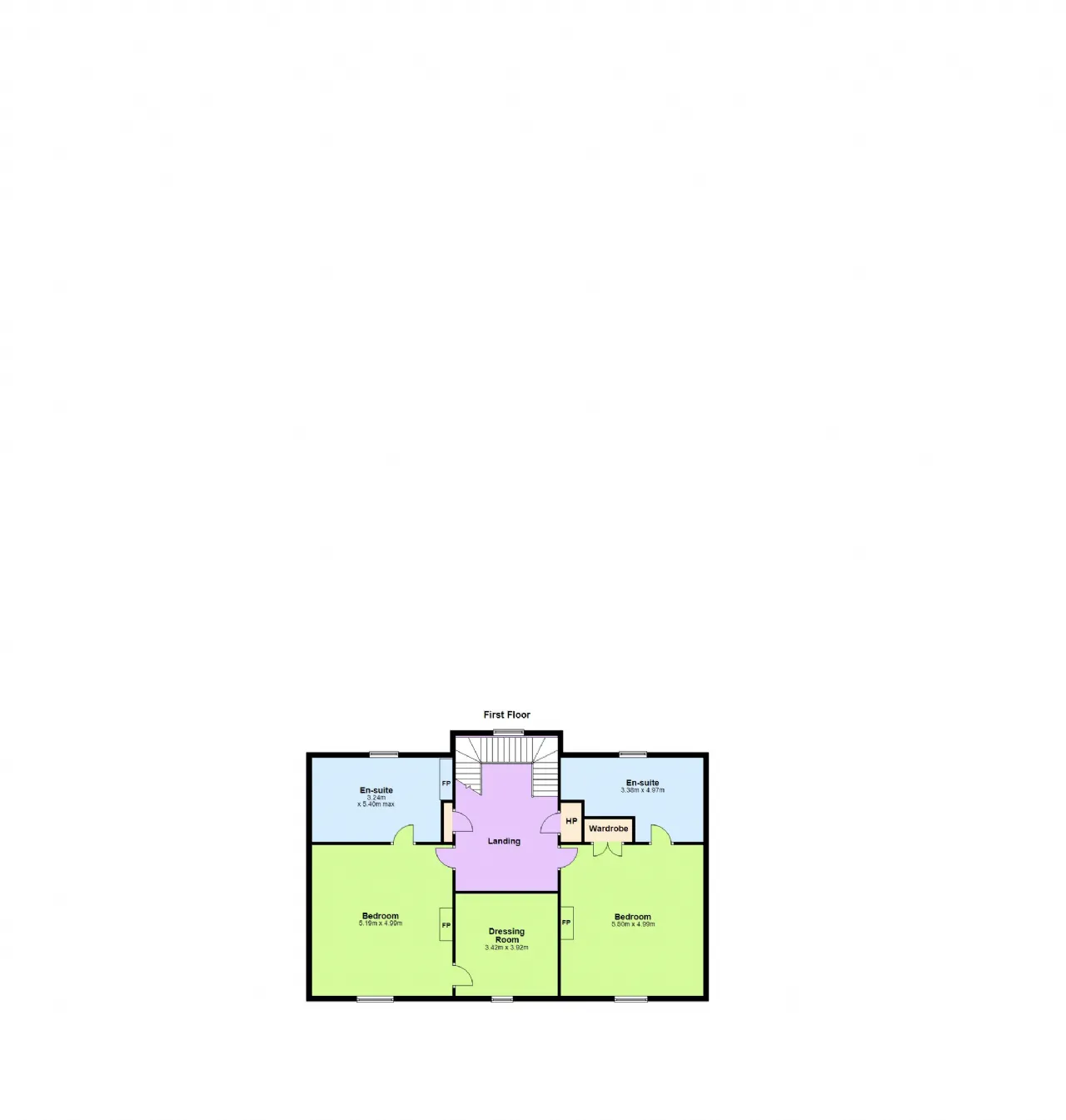 A staircase rises to a gallery landing at first-floor level, where two beautifully appointed bedroom suites overlook the front lawns. Both rooms are generously proportioned and immaculately presented, each featuring fireplaces and luxurious bathroom fittings. One suite includes an elegant dressing room with bespoke wardrobes, while the bathrooms are finished to an exceptional standard with high-quality fixtures and fittings throughout.