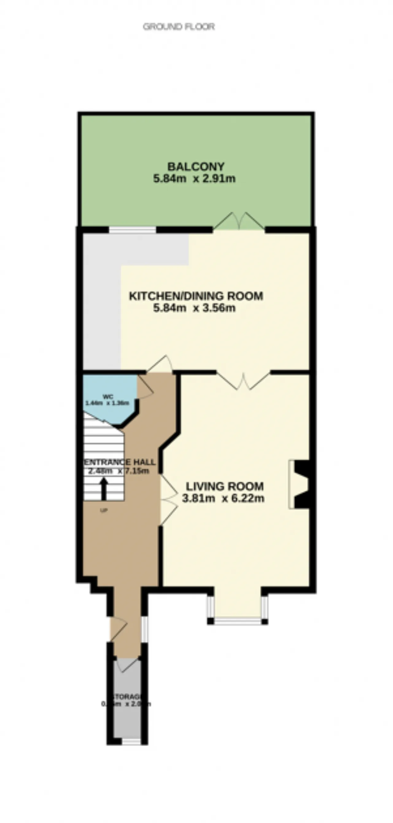Kitchen/Dining Room 3.56m x 5.84m An open plan contemporary style kitchen/dining room that is well equipped with both floor and eye level units. It features a tiled splash back, integrated appliances and one window overlooking the south-facing balcony to the rear. There are French doors that lead to the balcony area which is an ideal area for al fresco dining.