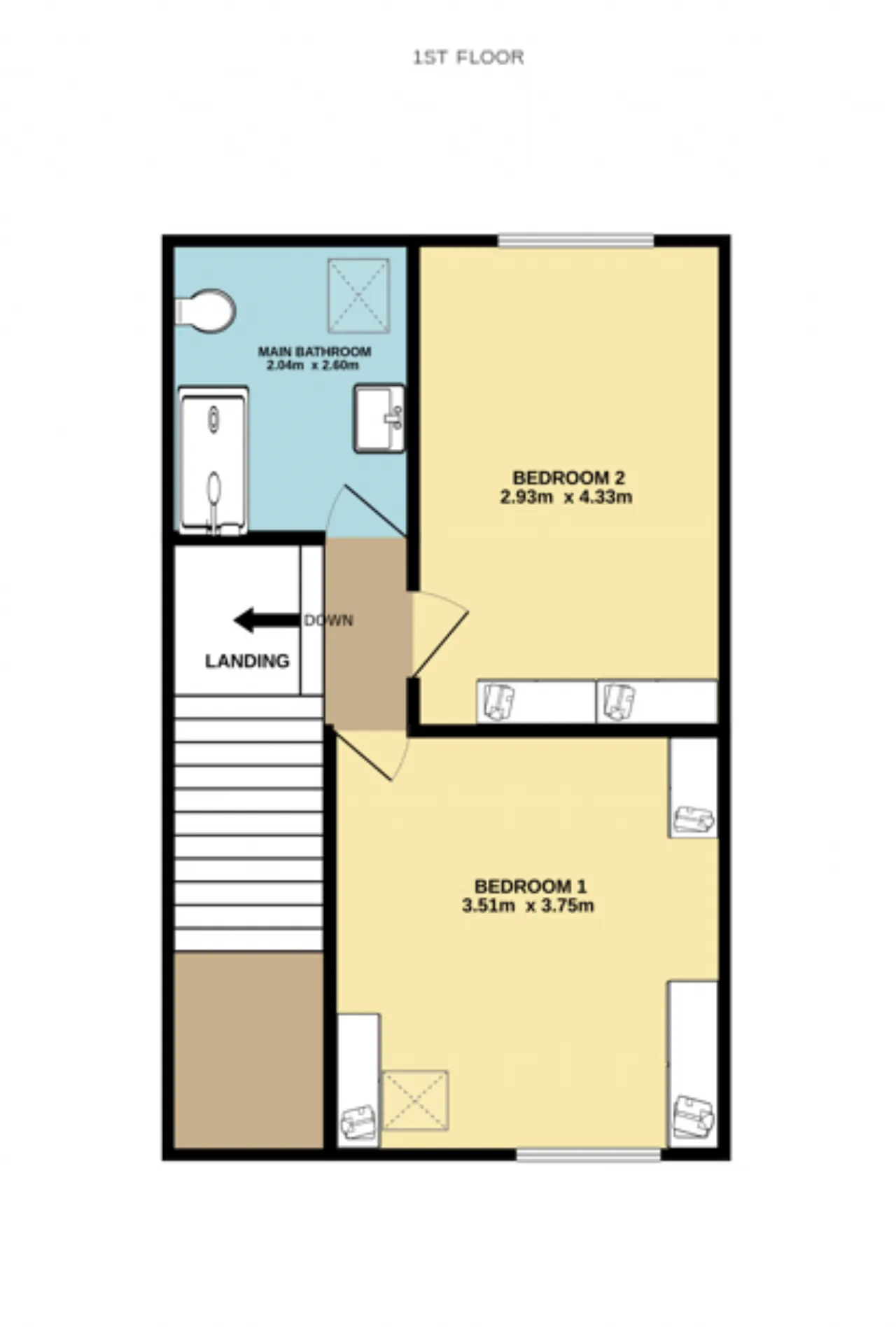 Landing 2.05m x 2.77m The landing gives access to two large double bedrooms and the main bathroom.