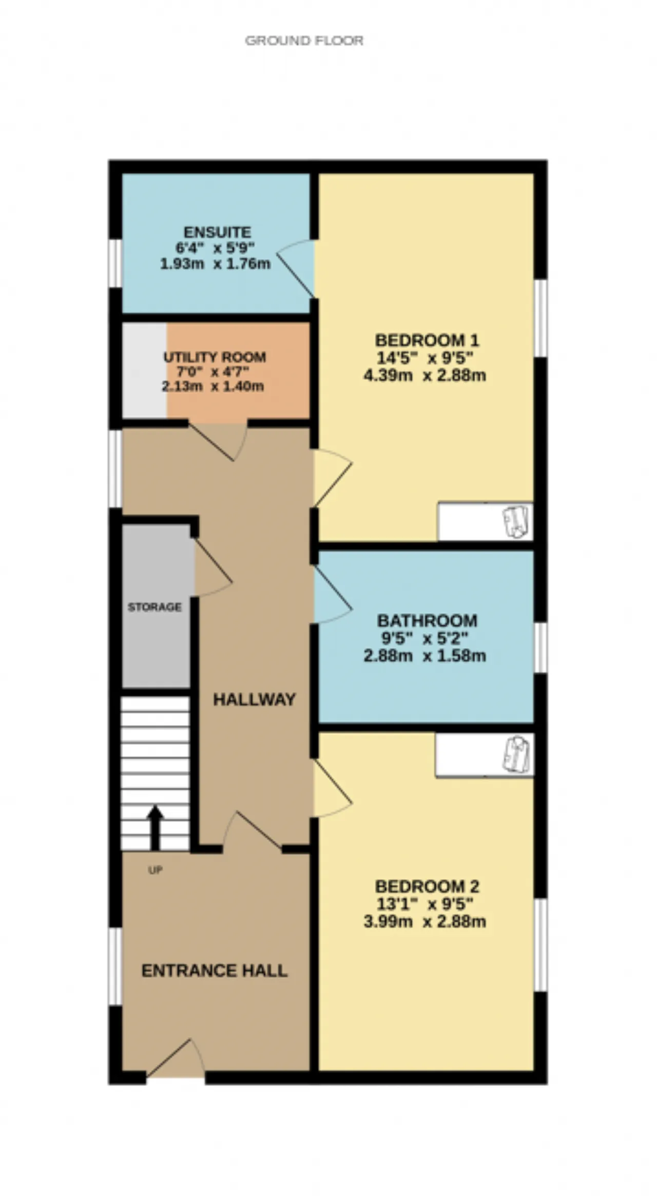 Utility Room 2.13m x 1.40m A practical separate space on the ground floor providing additional storage and laundry facilities.