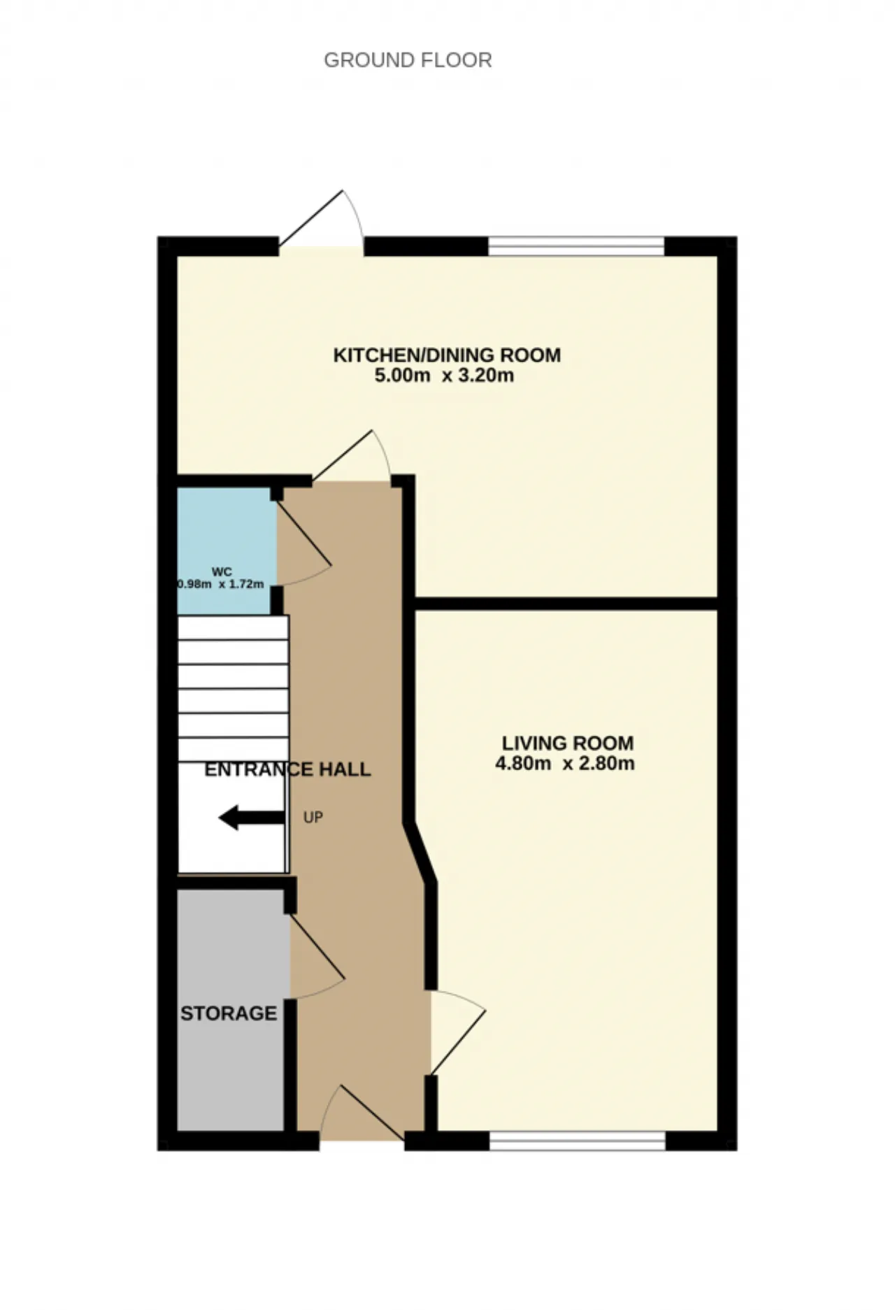 WC 1.70m x 1.00m Tiled floor, Part tiled walls, Water closet, Wash hand basin, Light fitting, Extractor