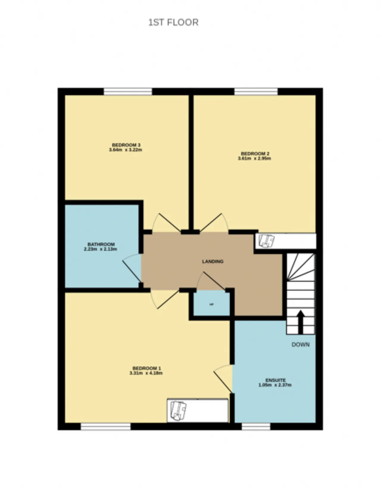 Bedroom Three 3.61m x 2.95m Fitted sliding wardrobes, TV & phone point.