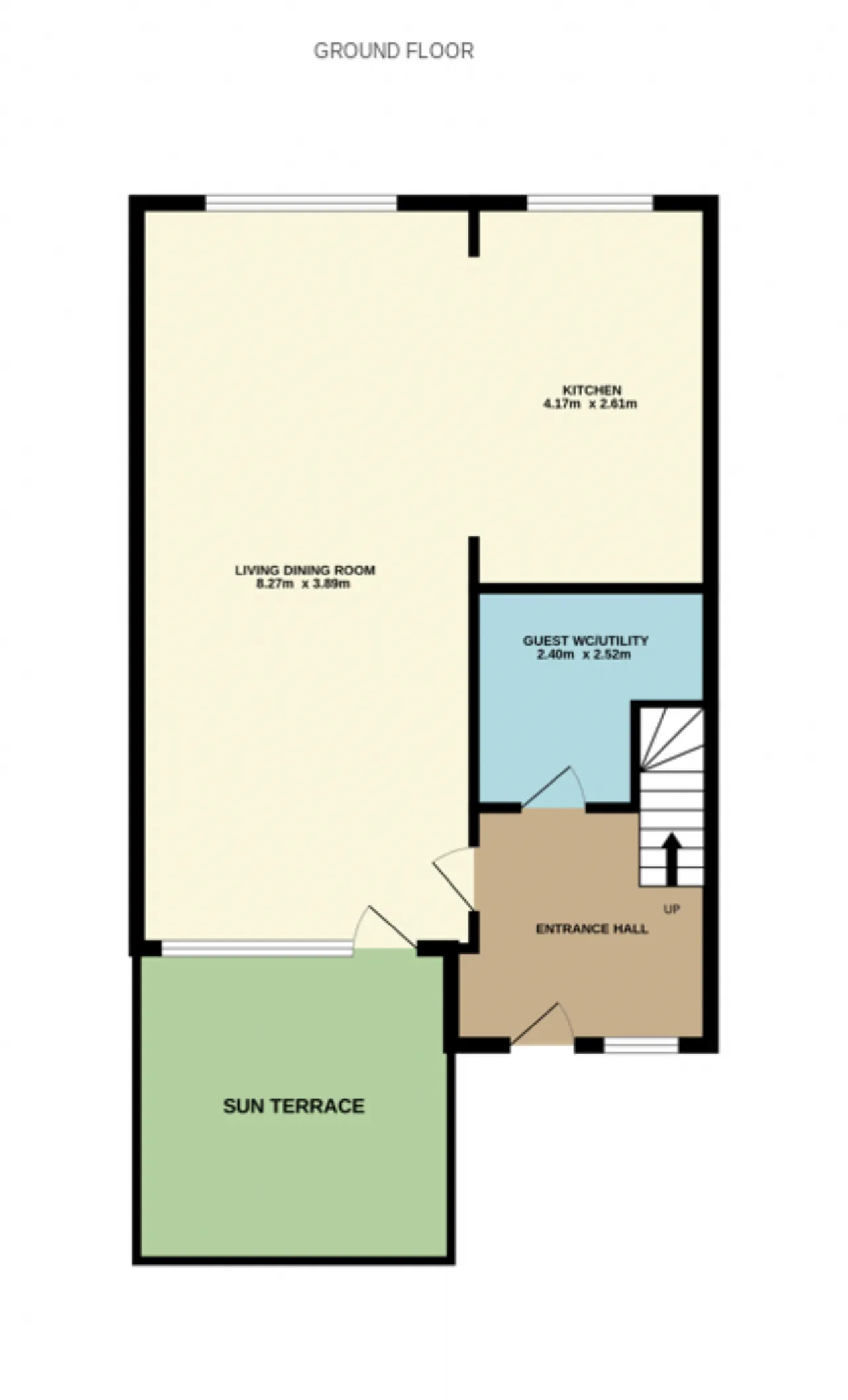 The property benefits from its own front door and offers an excellent balance between living and sleeping accommodation. A spacious dual-aspect living and dining room overlooks the sun terrace, providing a perfect setting for both relaxing and entertaining.