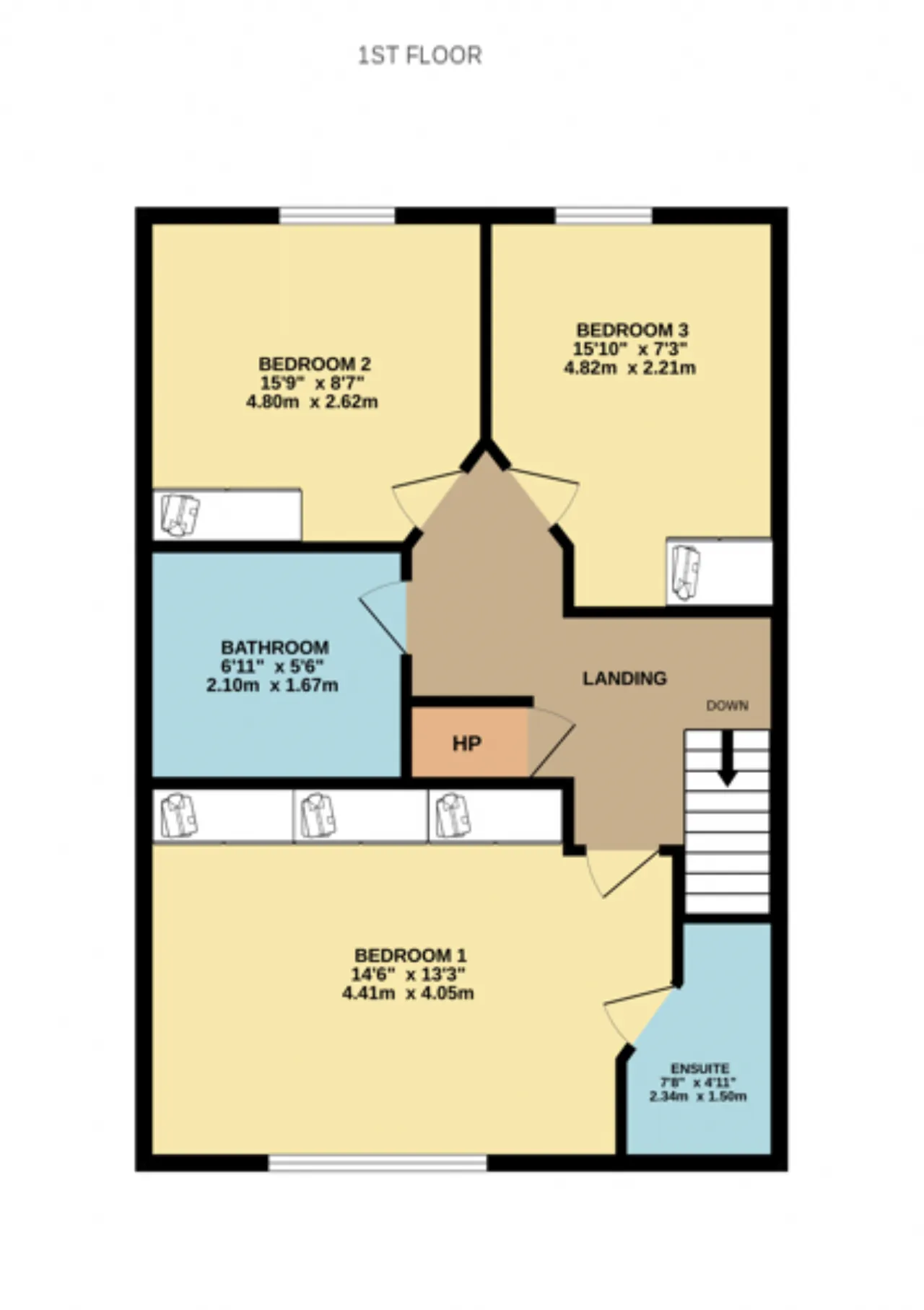 Bedroom 3 4.82m x 2.21m A very spacious single bedroom (with capacity to accommodate a double bed), featuring solid wood flooring, built-in wardrobe, and newly installed triple-glazed windows.