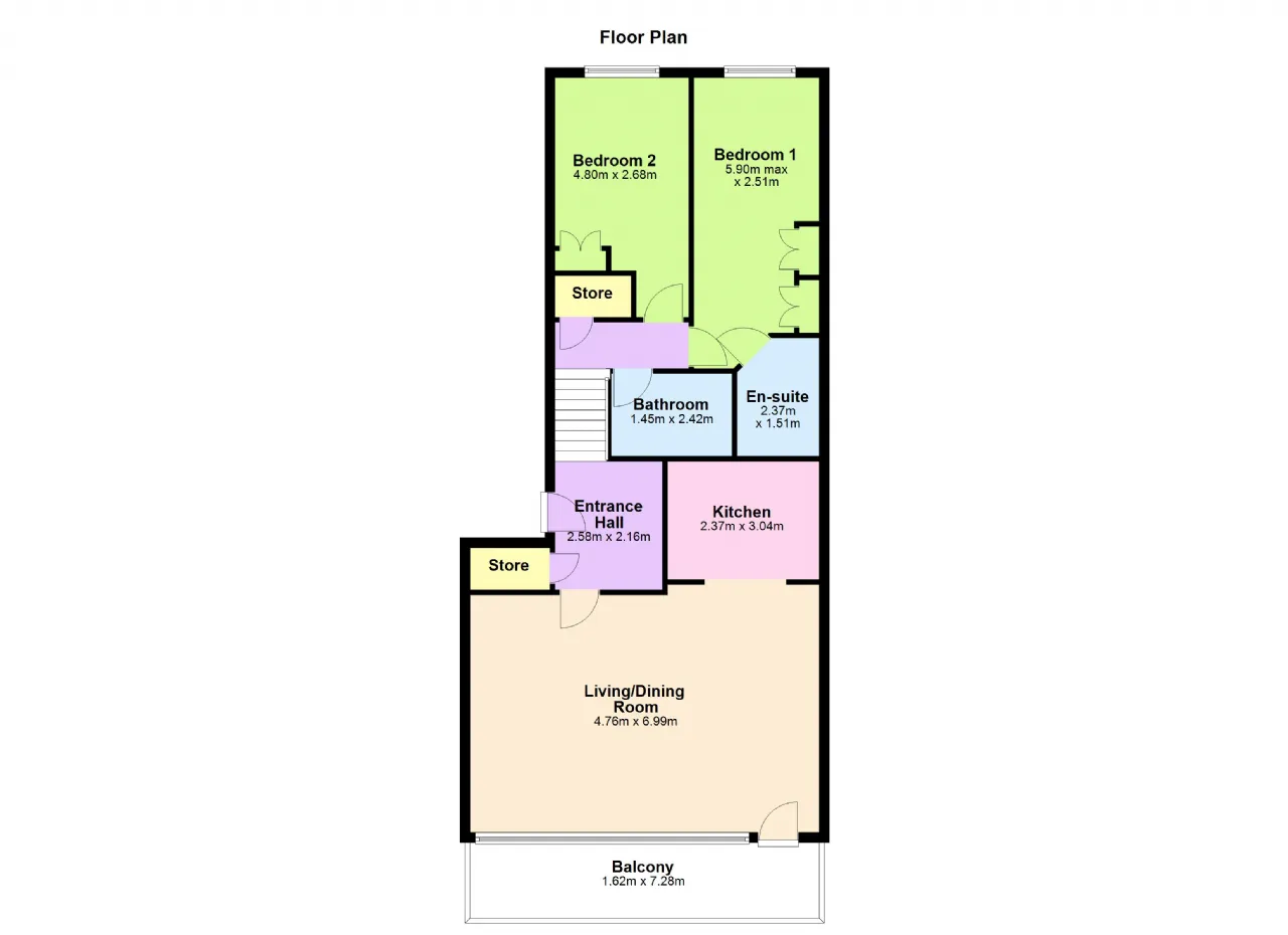 Bedroom 1 5.90m x 2.51m Double bedroom with laminate flooring and built in wardrobes.