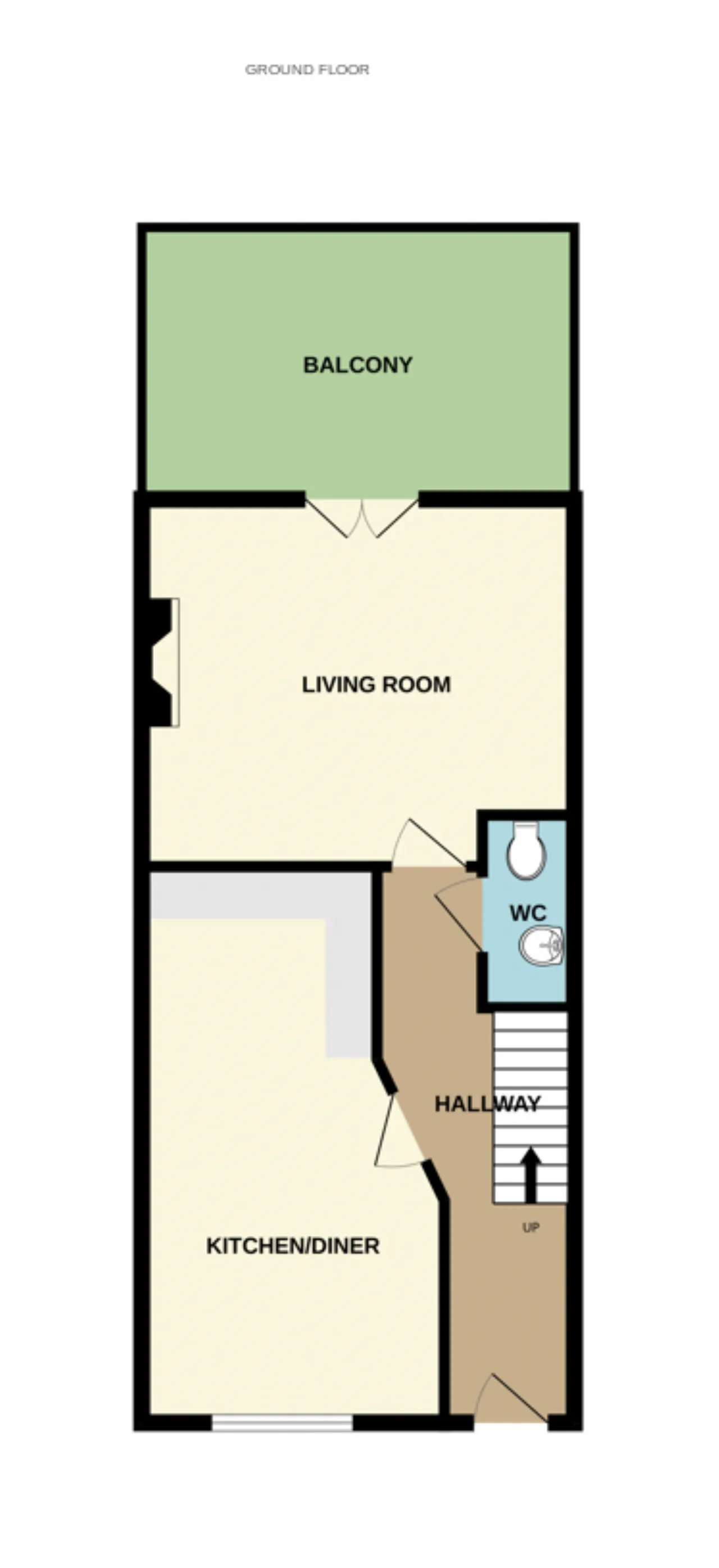 Tastefully styled throughout, the home offers a welcoming interior with solid wood flooring running through a wide entrance hallway. A WC is neatly tucked under the stairs. The living room is bright and airy, thanks to full-height glass double doors that open onto the west-facing balcony. It also features elegant solid wood flooring and a sleek black quartz fireplace with a gas effect fire, creating a cosy and stylish space.