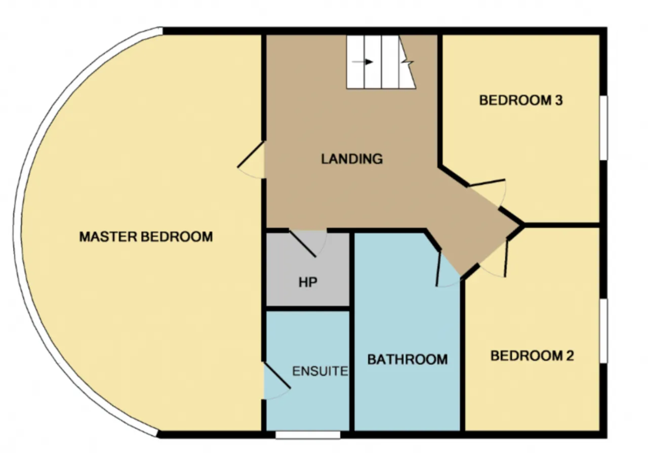 Lounge 5.2m x 4.3m Feature fireplace with large built-in units, double glazed window to side access, large, curved wall with double glazed windows and a double-glazed door leading to a Juliette balcony. Wide plank wooden flooring.