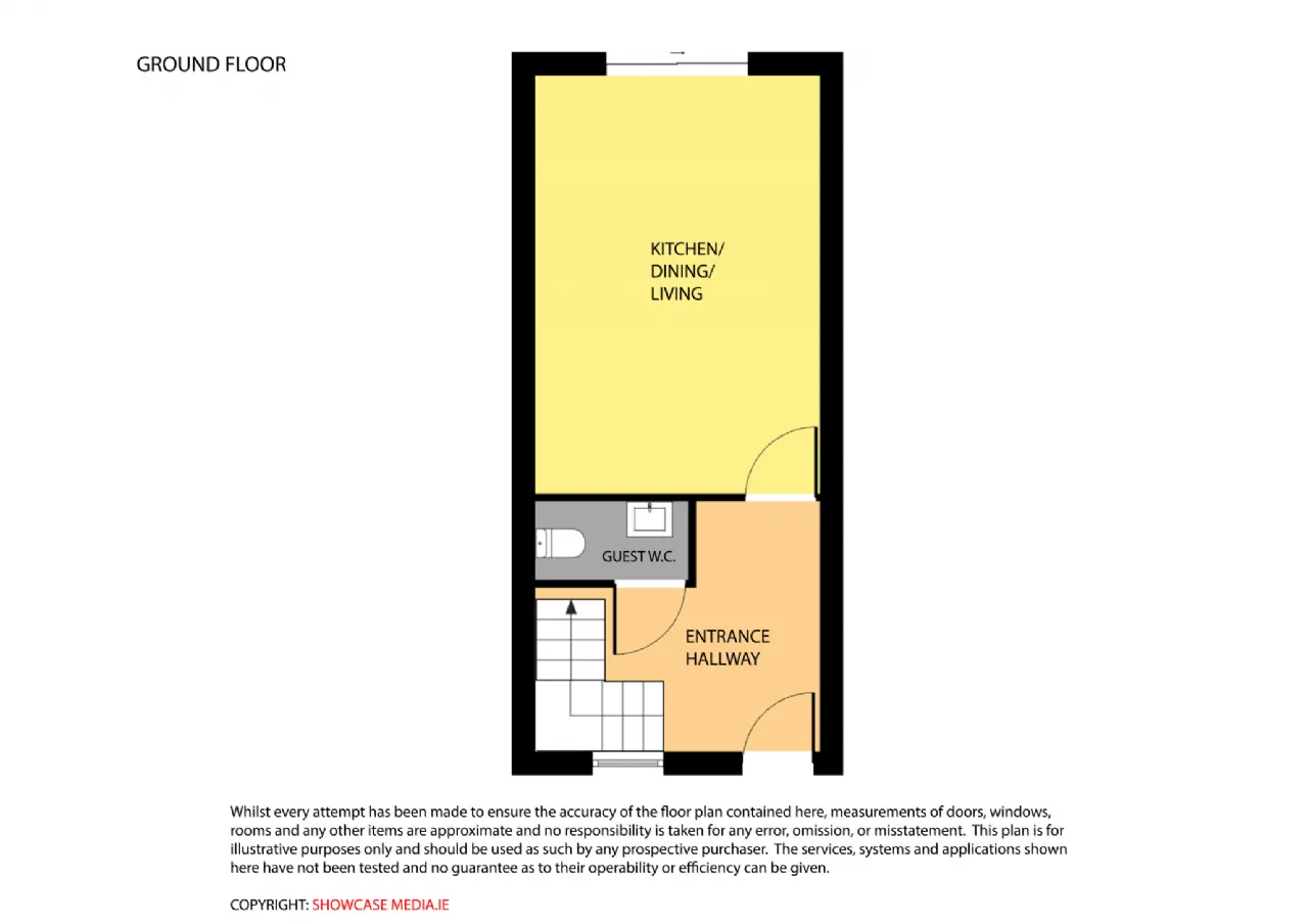 Guest W.C. 1.00m x 1.95m tile flooring, WC, wash hand basin