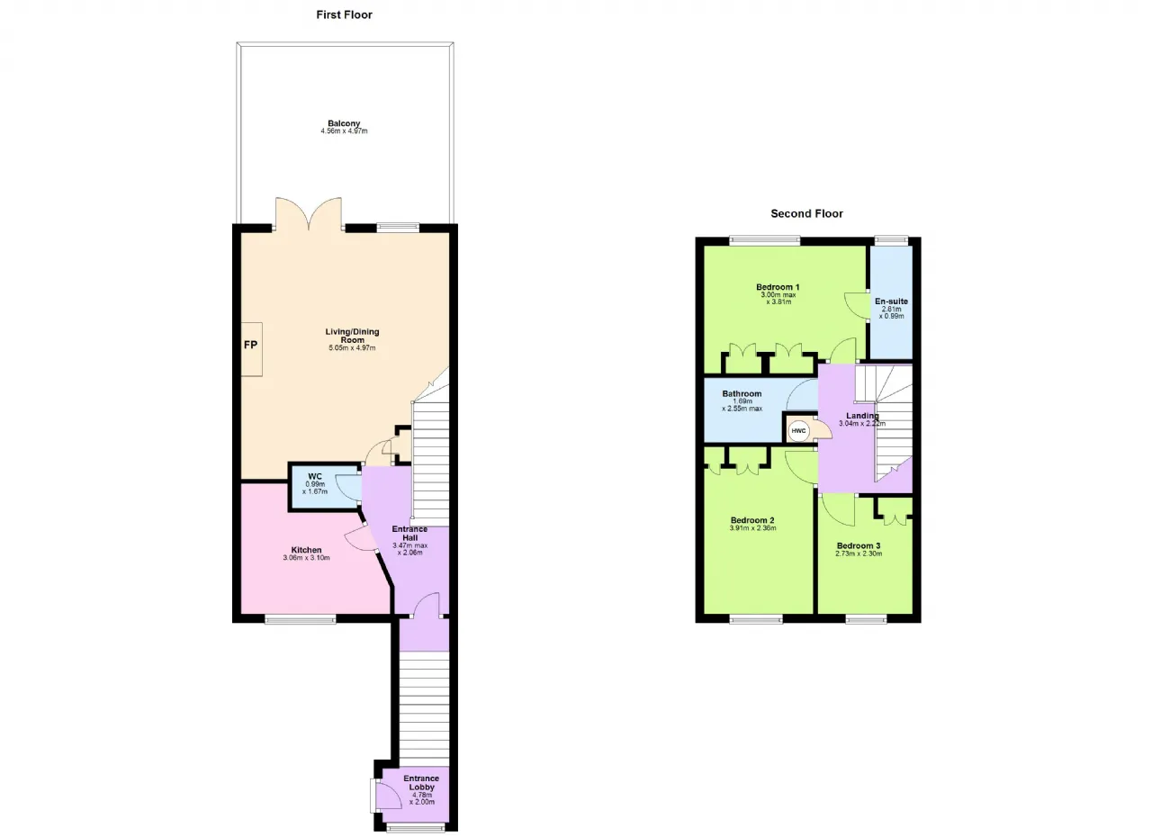 Bedroom 2 3.91m x 2.36m Spacious double room to front with built-in wardrobes.