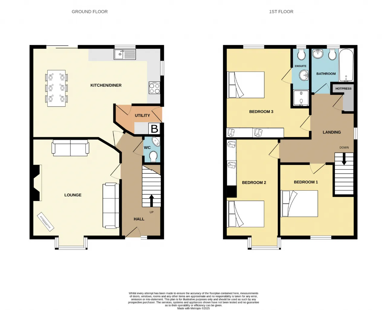 Extending to a robust 115m² of accommodation, three large double bedrooms are supported on the first floor with quality built in storage solutions and well-appointed bathrooms. The ground floor is generously proportioned with a large sitting room to the front, sporting a bay window and solid fuel fireplace, while the east facing kitchen/dining room opens via patio doors to a fully walled private rear yard.
