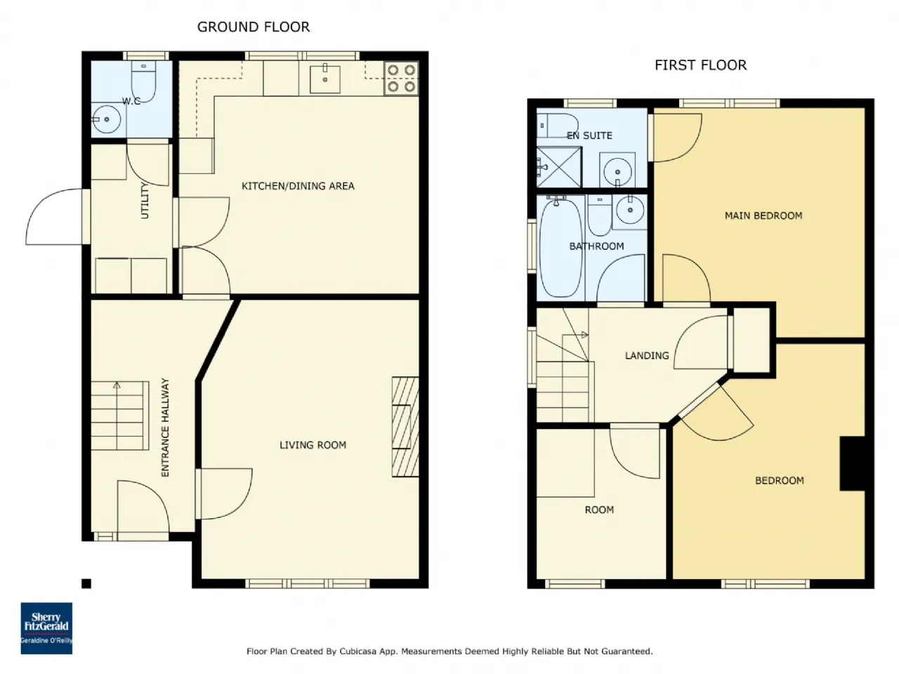 This property features an open plan kitchen / dining room, sitting room with feature fire place, utility room and W/C. Upstairs in the property there are three bedrooms comprising of two double bedrooms, one with an ensuite and a single bedroom, family bathroom and hot press.