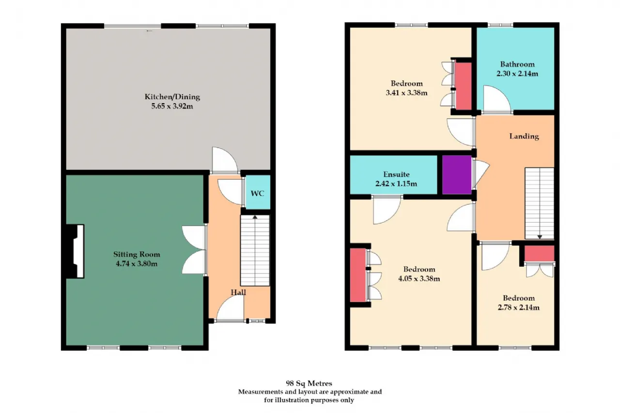 Generously proportioned at 98 sq. m approx., the accommodation comprises at ground floor level an entrance hallway, guest w.c, sitting room and kitchen / dining room. On the first floor there are three bedrooms, 1 en-suite and the main bathroom. To the rear of the property a delightful patio surrounded by mature bedding.
