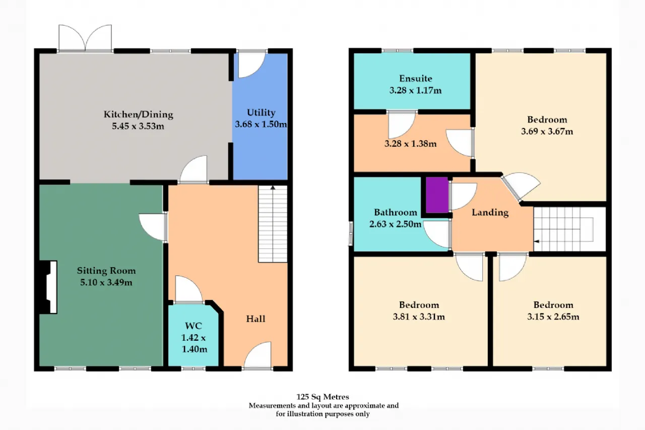 Beyond the manicured exterior is a warm and welcoming home extending to a well-proportioned 125 sq. m approx. In brief the layout comprises living room, kitchen / dining room, utility and guest w.c. at ground floor level. On the first floor the family bathroom and 3 double bedrooms with the master bedroom boasting a fully fitted walk in wardrobe and en-suite.