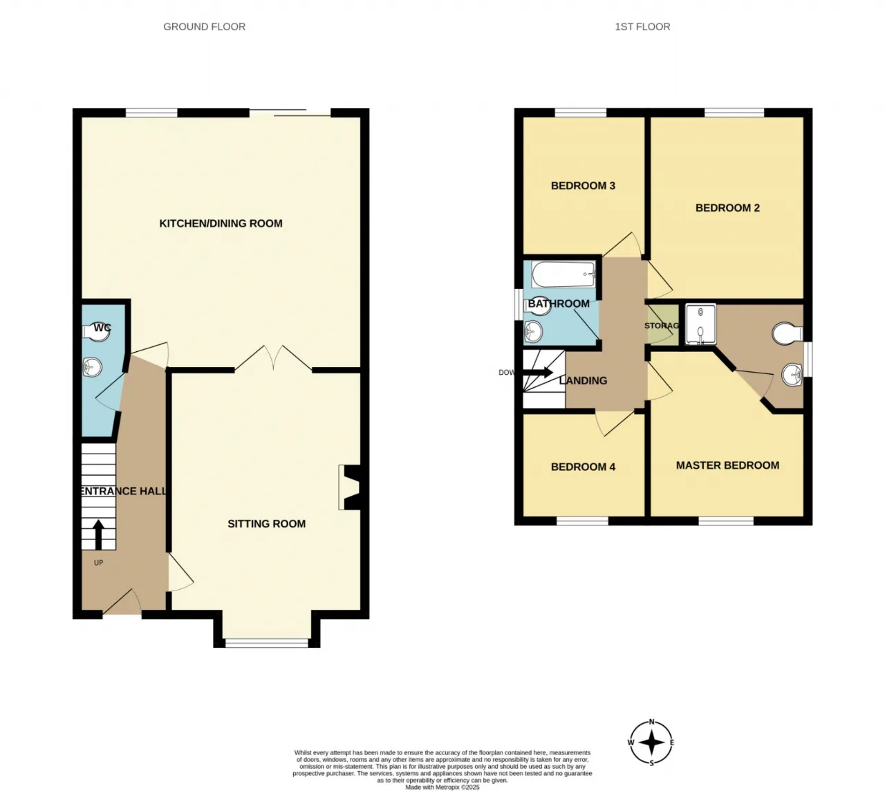 The ground floor features a bright sitting room with a charming bay window and a feature fireplace with open fire and cast iron insert perfect for cosy evenings. A guest W/C adds practicality, while the spacious open-plan kitchen and dining area is ideal for family life and entertaining, complete with sliding doors that open out to the rear garden.