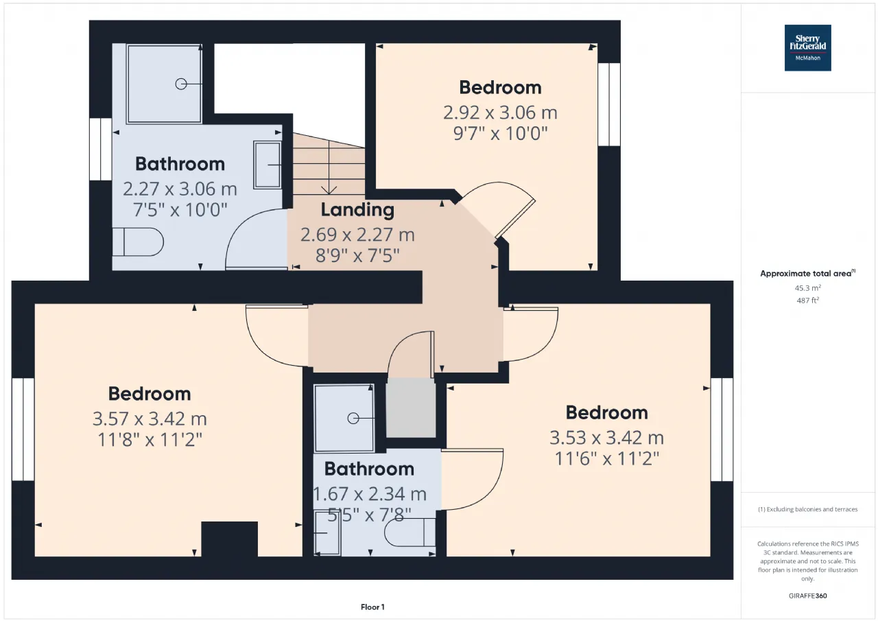 Landing 2.69m x 2.27m Laminate timber flooring with doors granting access to the bedrooms & the main bathroom.