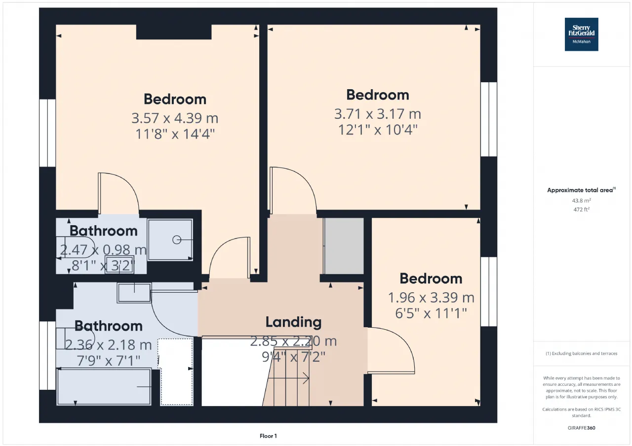 Upstairs, the first floor features a well-appointed main bathroom with bath, toilet, and wash hand basin. There are three comfortable bedrooms, including a master bedroom with en-suite facilities.