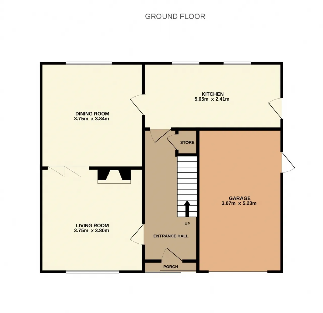 Dining room 3.75m x 3.84m Located off the kitchen and living room, the dining room features carpet flooring and a large window overlooking the rear garden.