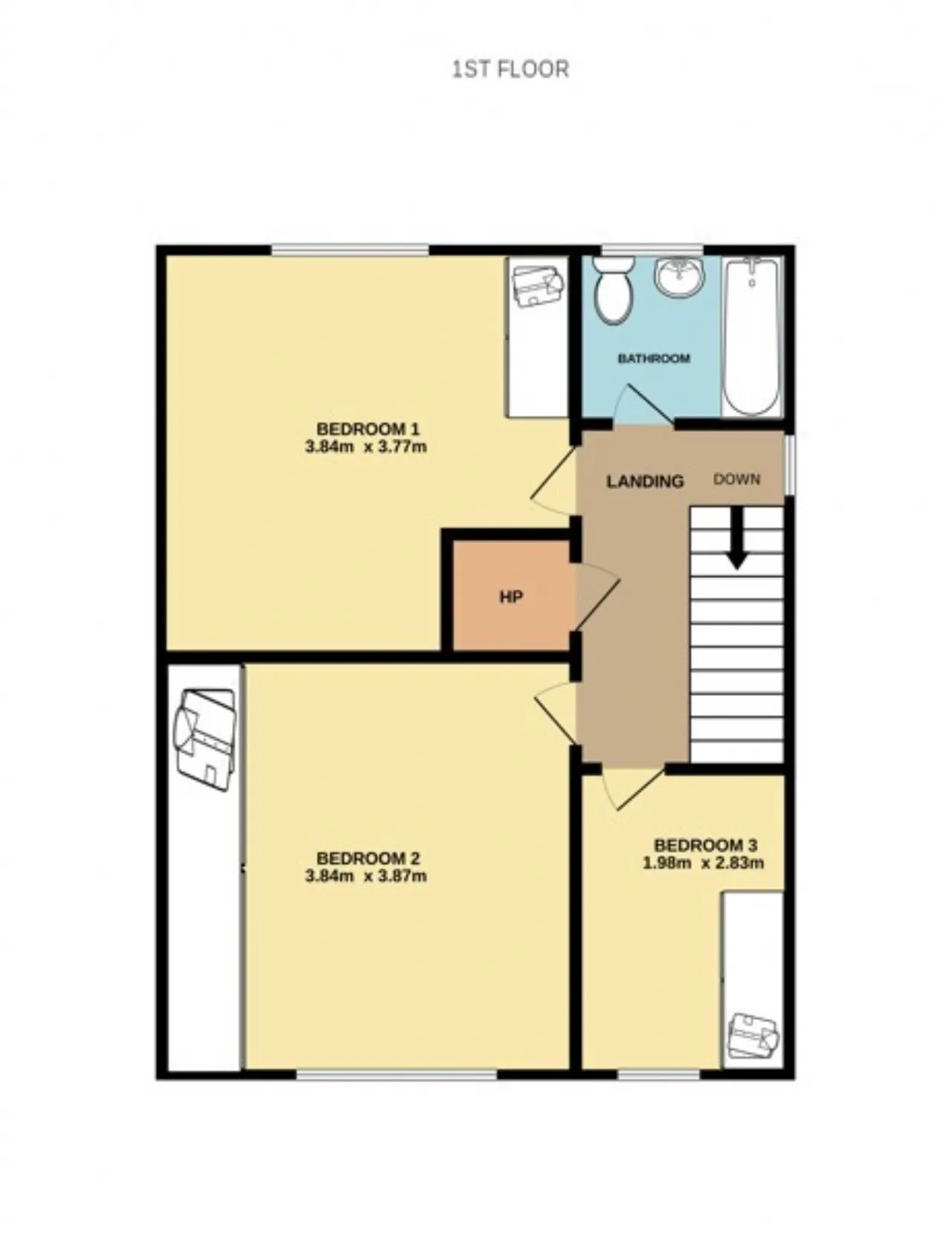 Bedroom 1 3.84m x 3.77m A spacious double bedroom with carpet flooring and a window overlooking the rear garden.