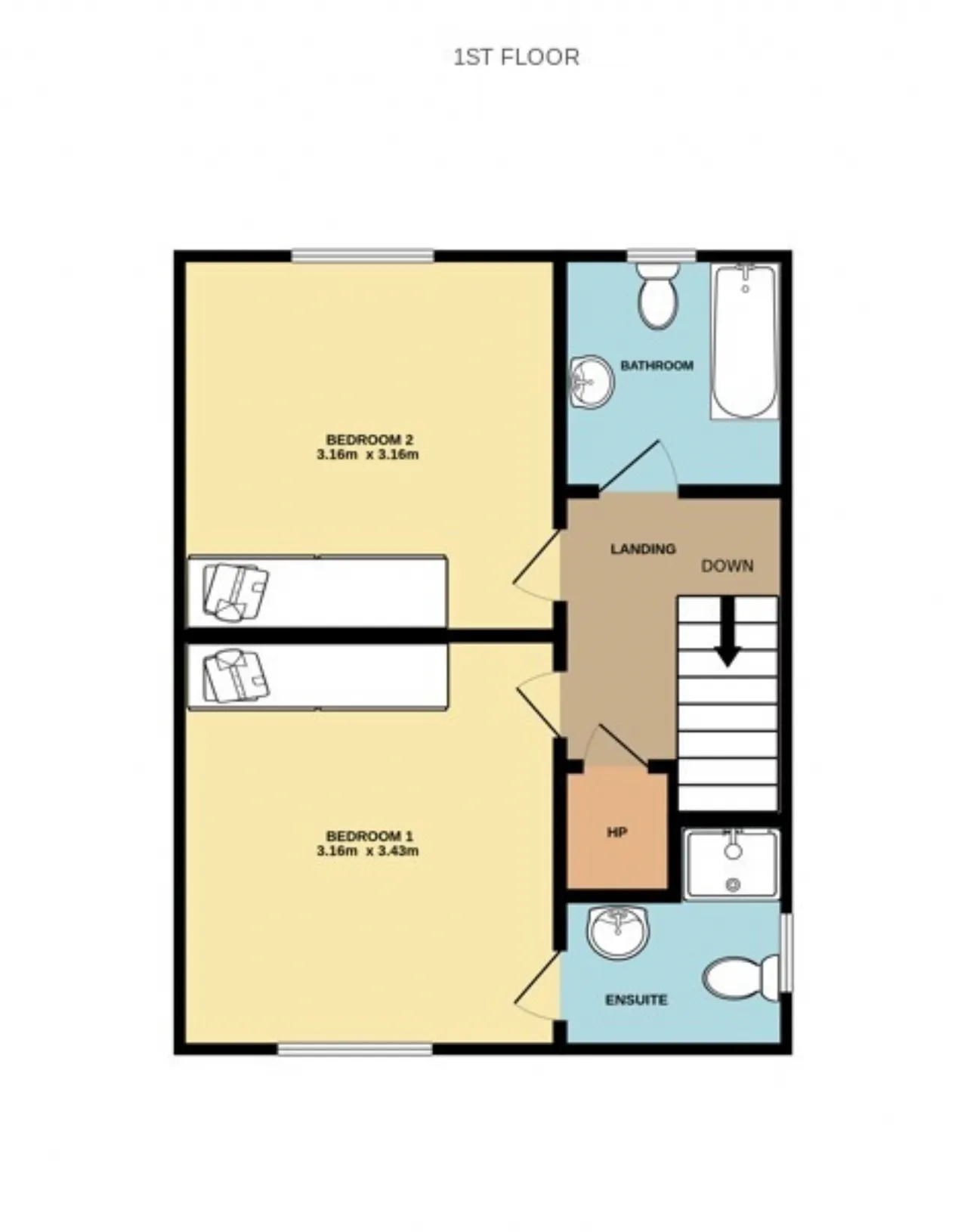 Bedroom 1 3.16m x 3.43m Located to the front of the home, this spacious double bedroom comprises of laminate wood flooring and a centre light fixture.