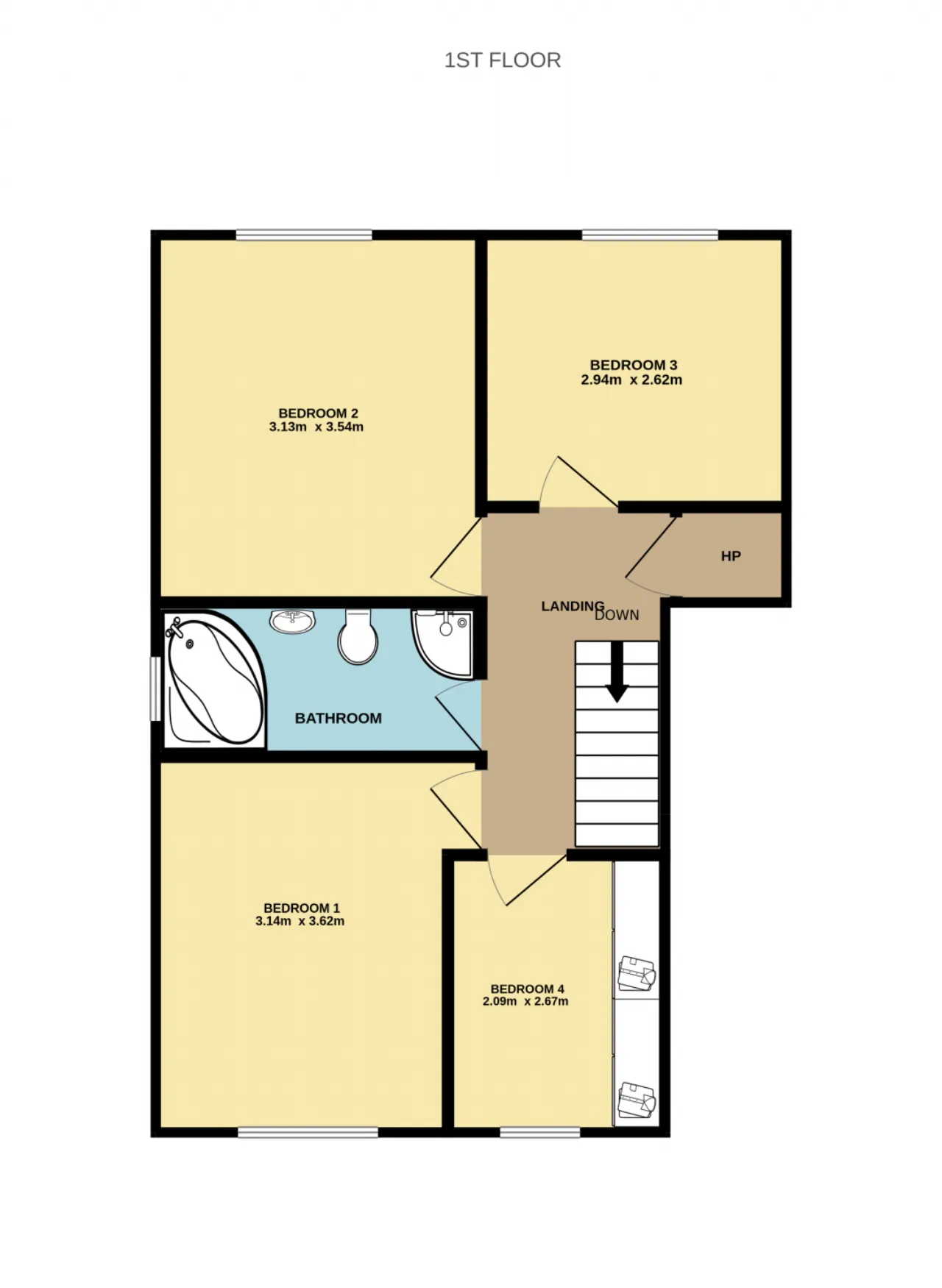 Landing A carpeted staircase leads to a spacious landing, complete with a generous hot press.