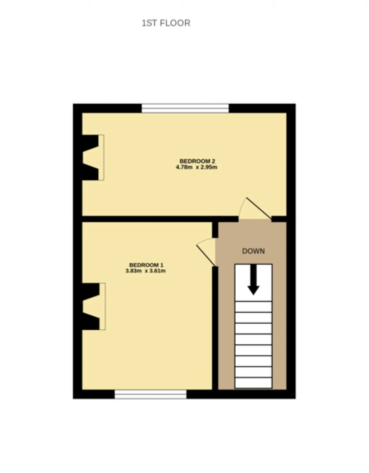 Bedroom 1 3.61m 3.83m This is a generous size double bedroom comprising of one window and an open fireplace.