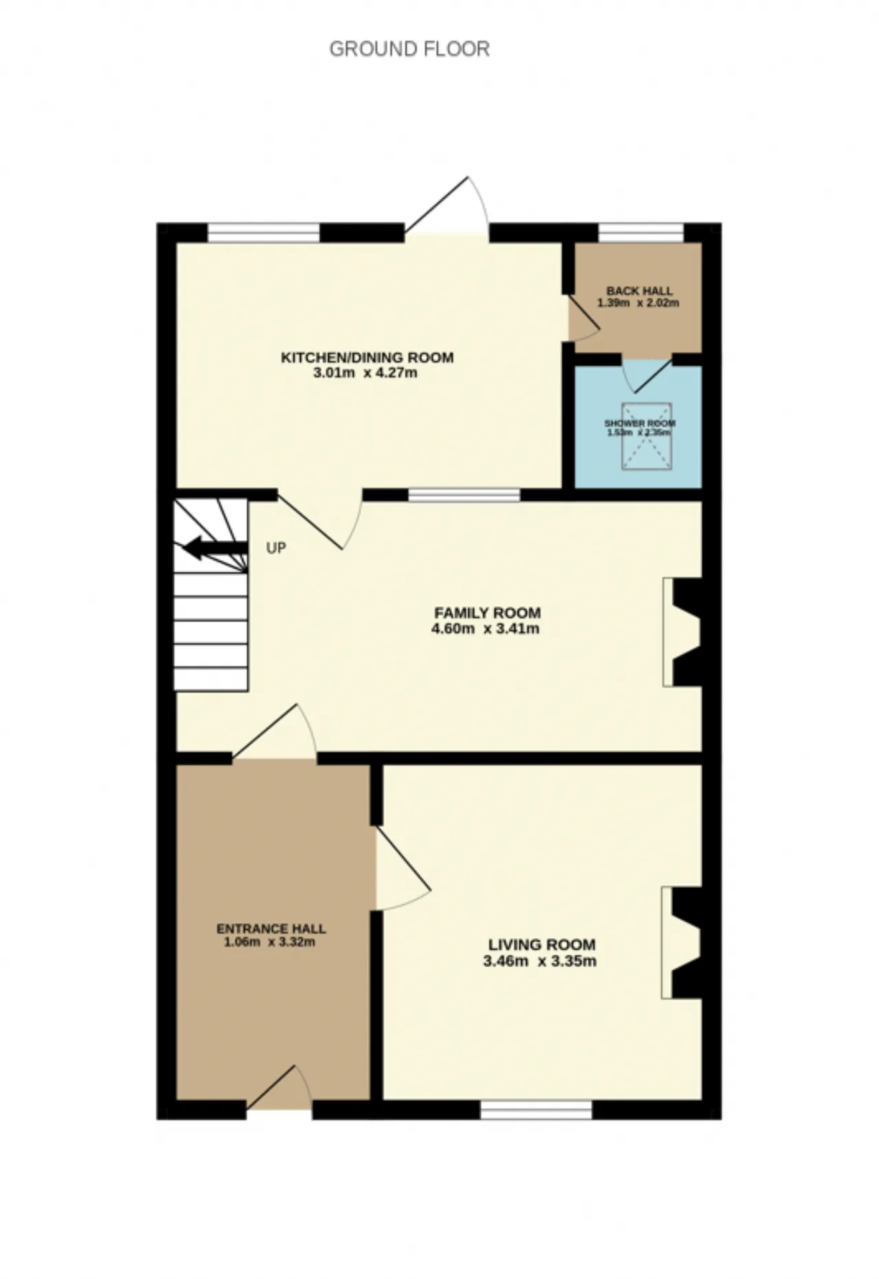 Back Hall 2.02m x 1.39m This room has one frosted window to the rear, plus it gives access to the shower room.