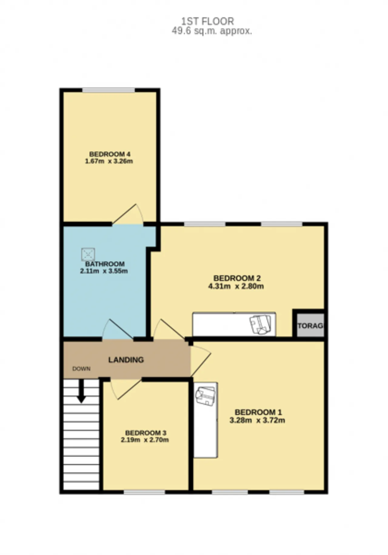 Bedroom 4 3.26m x 1.67m Fully carpeted single bedroom.