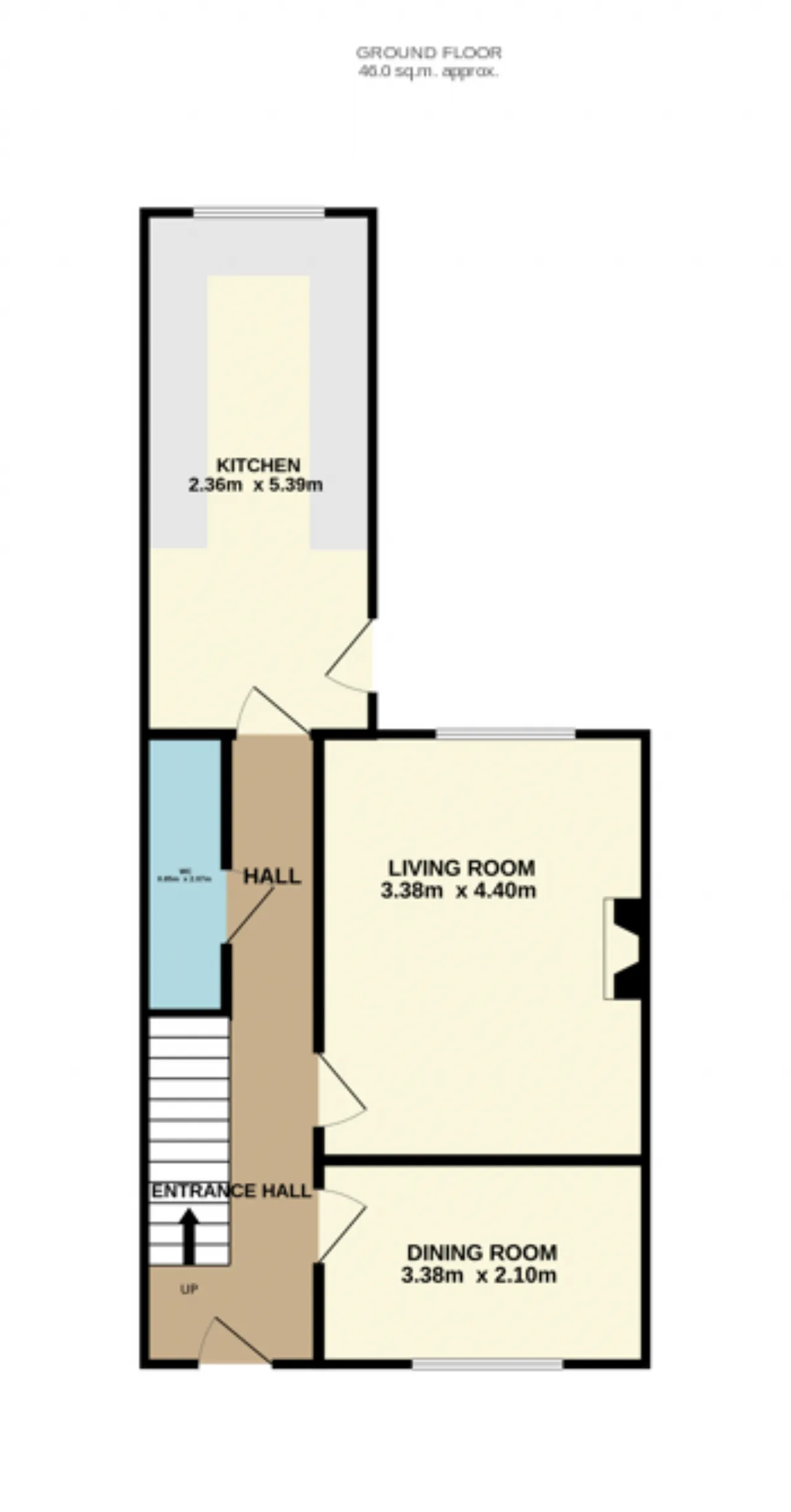 Kitchen 5.39m x 2.36m This kitchen features a variety of kitchen appliances, as well as plenty of built-in wall and floor-level units. Provides access to the back garden.