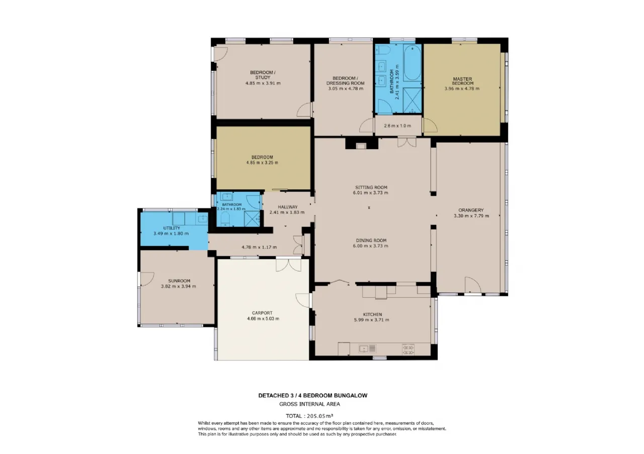 The south wing consists of a fourth bedroom, guest WC/shower, hall and a corridor leading to the utility area and a warm and inviting sunroom.