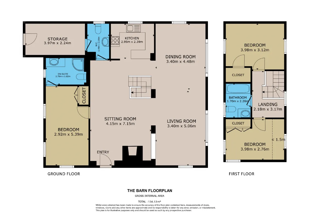 Upstairs hosts four generously sized bedrooms including a spacious bedroom with en-suite and dressing room, library and a family bathroom. The home is thoughtfully designed for both relaxed family living and elegant entertaining. The Barn Adjacent to the main house, The Barn is a fully restored three-bedroom guest cottage that exudes character. With an open-plan kitchen, dining, and living space complete with an open fireplace, the cottage offers a cozy, luxurious retreat.