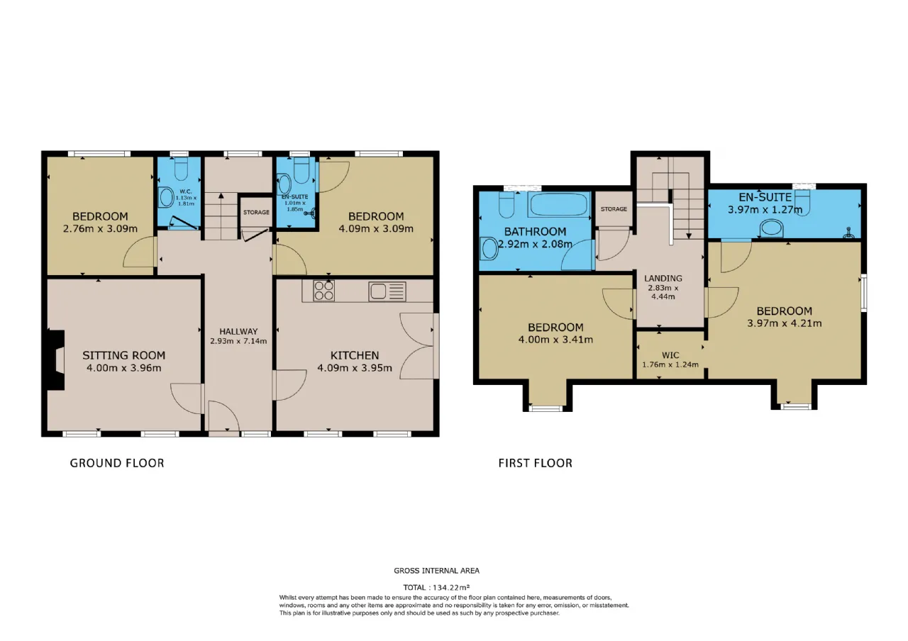 The ground floor comprises a welcoming entrance hallway leading to a comfortable sitting room with a solid fuel stove and a light-filled kitchen and dining area that overlooks the surrounding landscape. 2 bedrooms, one of which is en-suite and a guest bathroom complete the downstairs accommodation. The upstairs accommodation includes two generous double bedrooms, including an en-suite bathroom and a walk-in wardrobe in the main bedroom and a family bathroom.