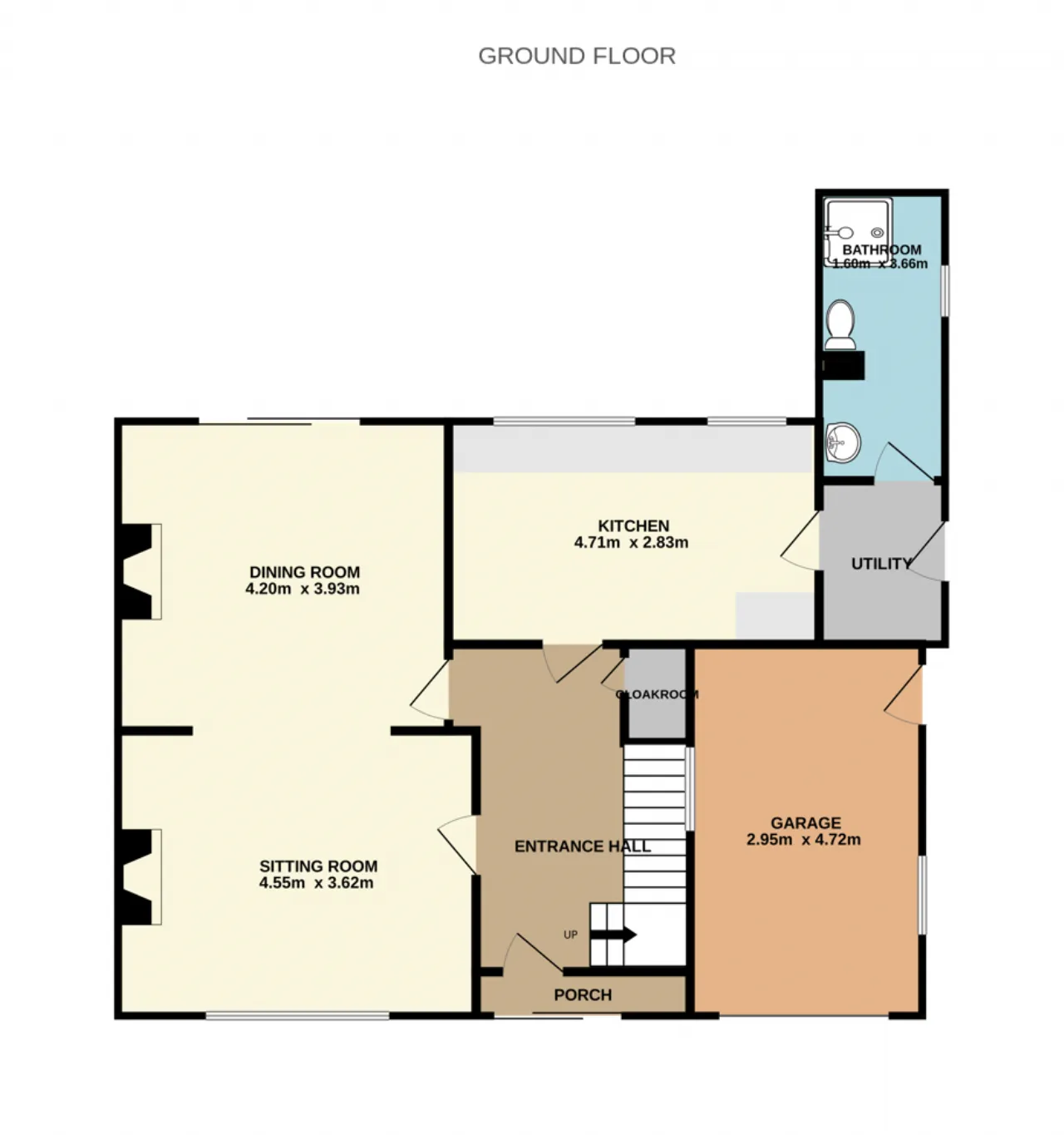 Dining Room 4.20m x 3.93m Bright space to the rear of the house that features inset open fireplace with marble surround, ceiling cornicing and centre rose. Sliding patio door that leads to the south facing rear garden.
