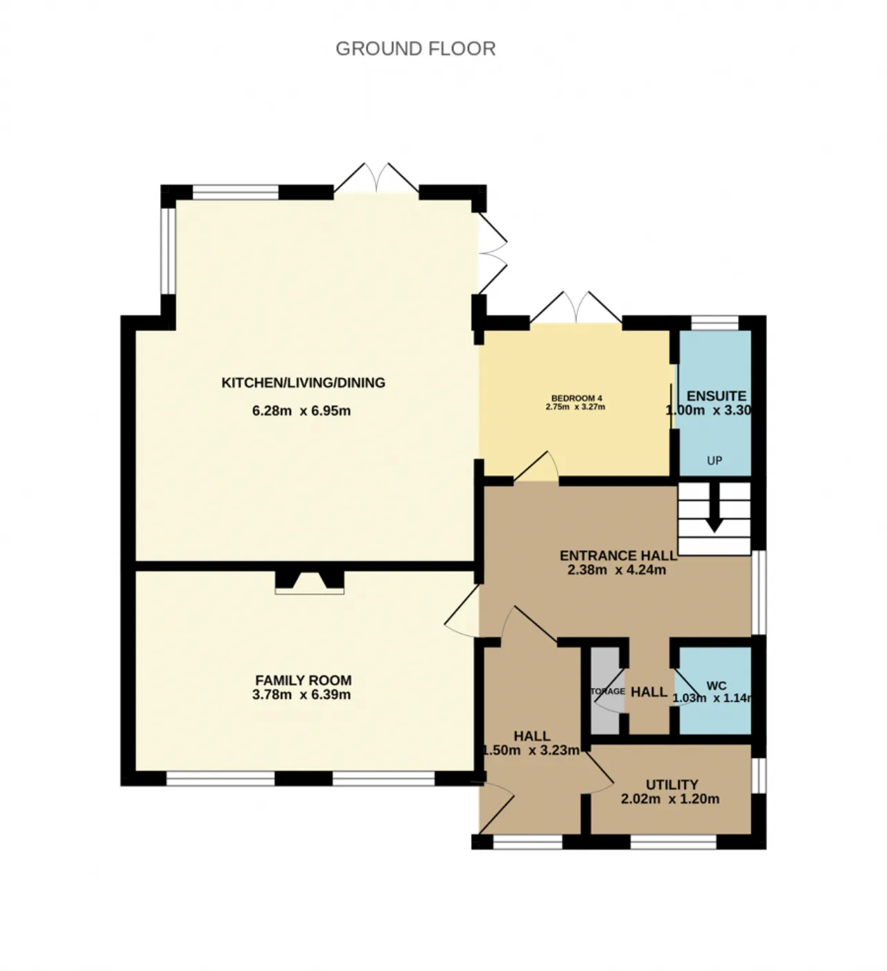 Bedroom 4 3.27m x 2.75m Spacious double bedroom on the ground floor with double doors leading to the west facing rear garden. There is a quality engineered floor and a barn style door leading to the En-Suite.