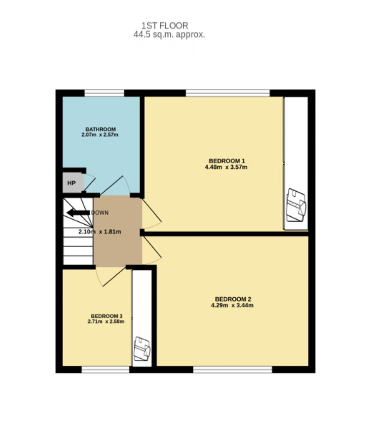 Landing 1.81m x 2.10m The landing opens to all bedrooms and the family bathroom.