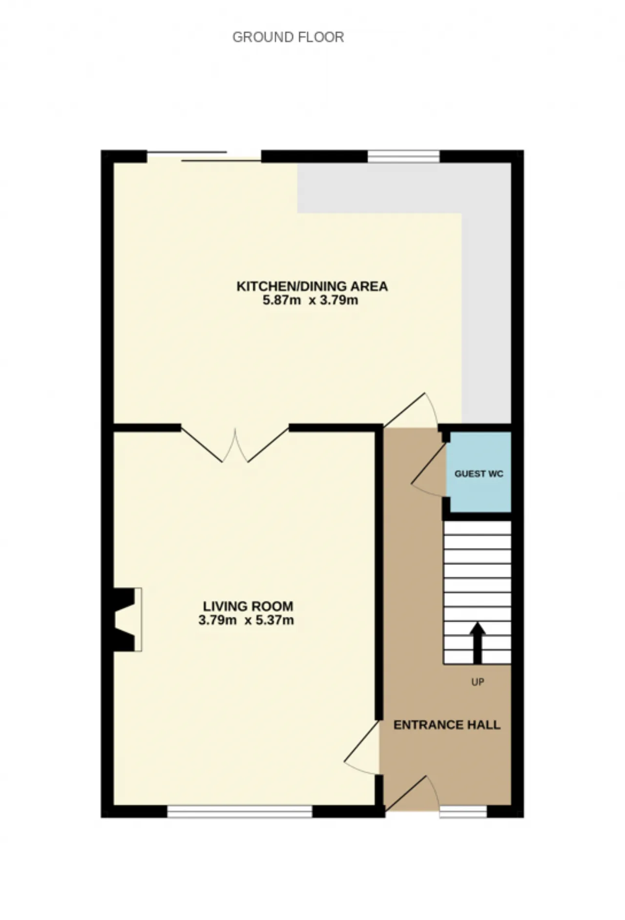 On entering this home, you are greeted by the bright and open entrance hall that provides access to all rooms on the ground floor. To the front of the property there is a living room with a large window that looks out to the front of the home. From here a set of french doors open into the open plan kitchen/dining area with the back garden being accessed from here through a sliding door. There is a guest WC conveniently located under the stairs.