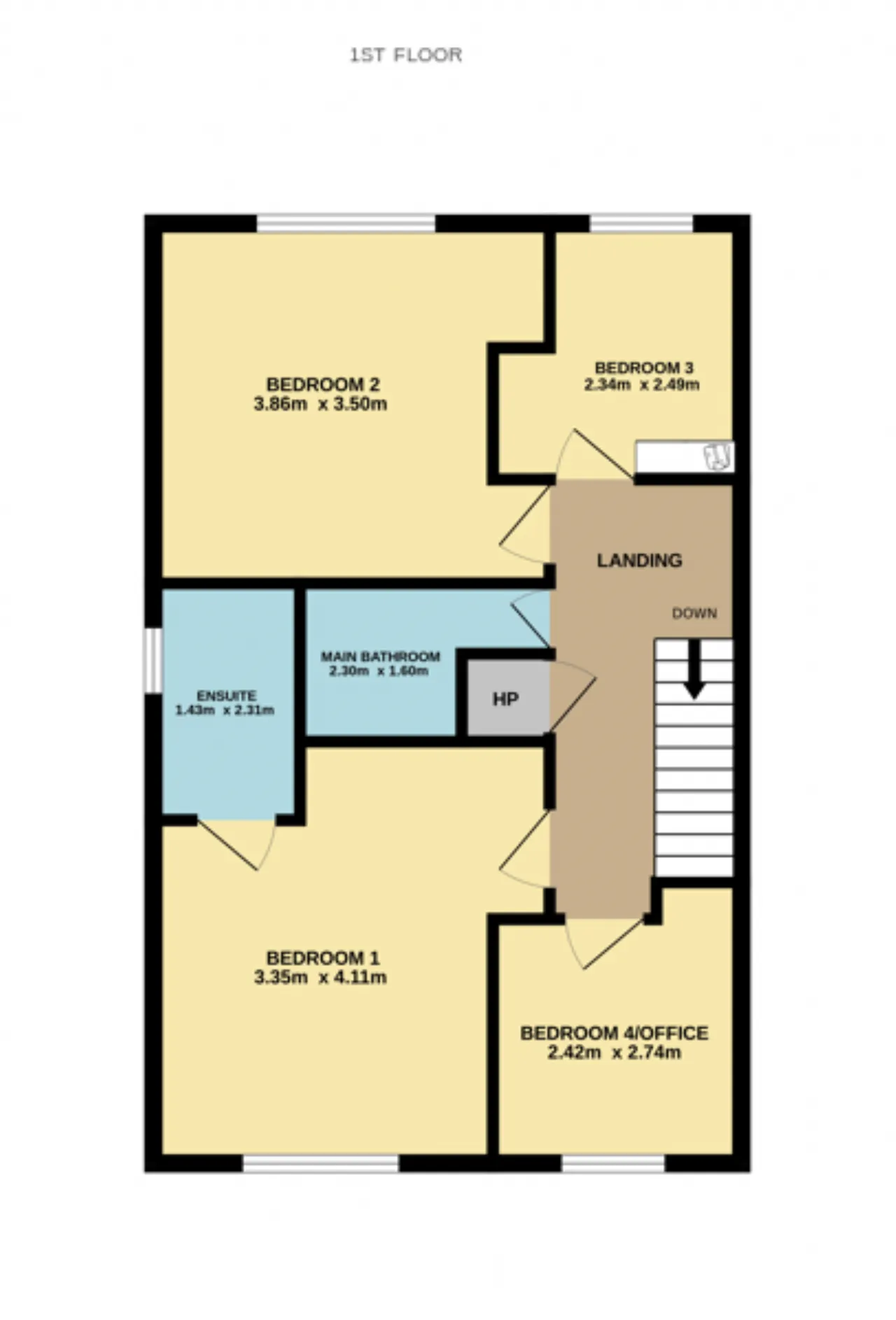 Bedroom 3 2.34m x 2.49m Double bedroom that overlooks the driveway to the front of the property that is currently being used as a home office. Consists of a carpeted flooring.