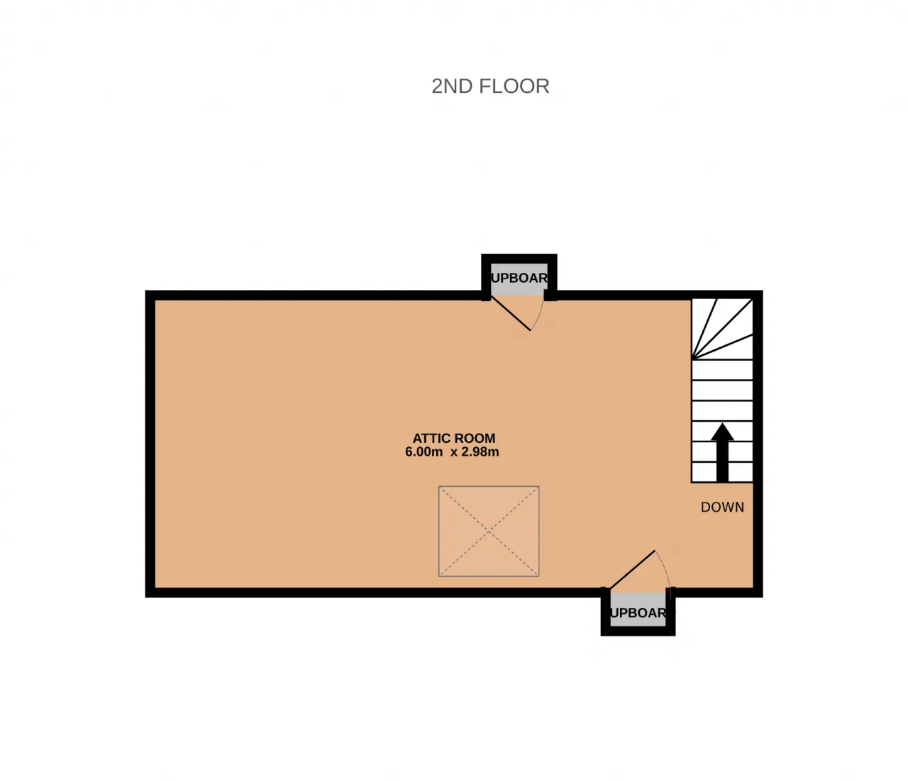 Attic Room 2.98m x 6.00m The large attic has been converted and is currently used as a fourth bedroom but equally could serve as a home office. It features wood flooring, two storage presses and a large Velux window which provides much light.
