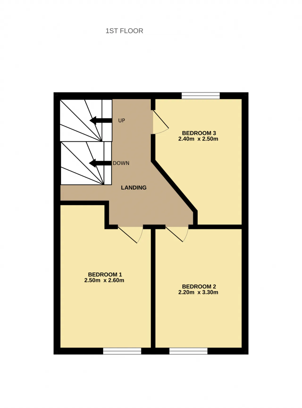 Landing The landing leads to three bedrooms and stairs to the second floor.