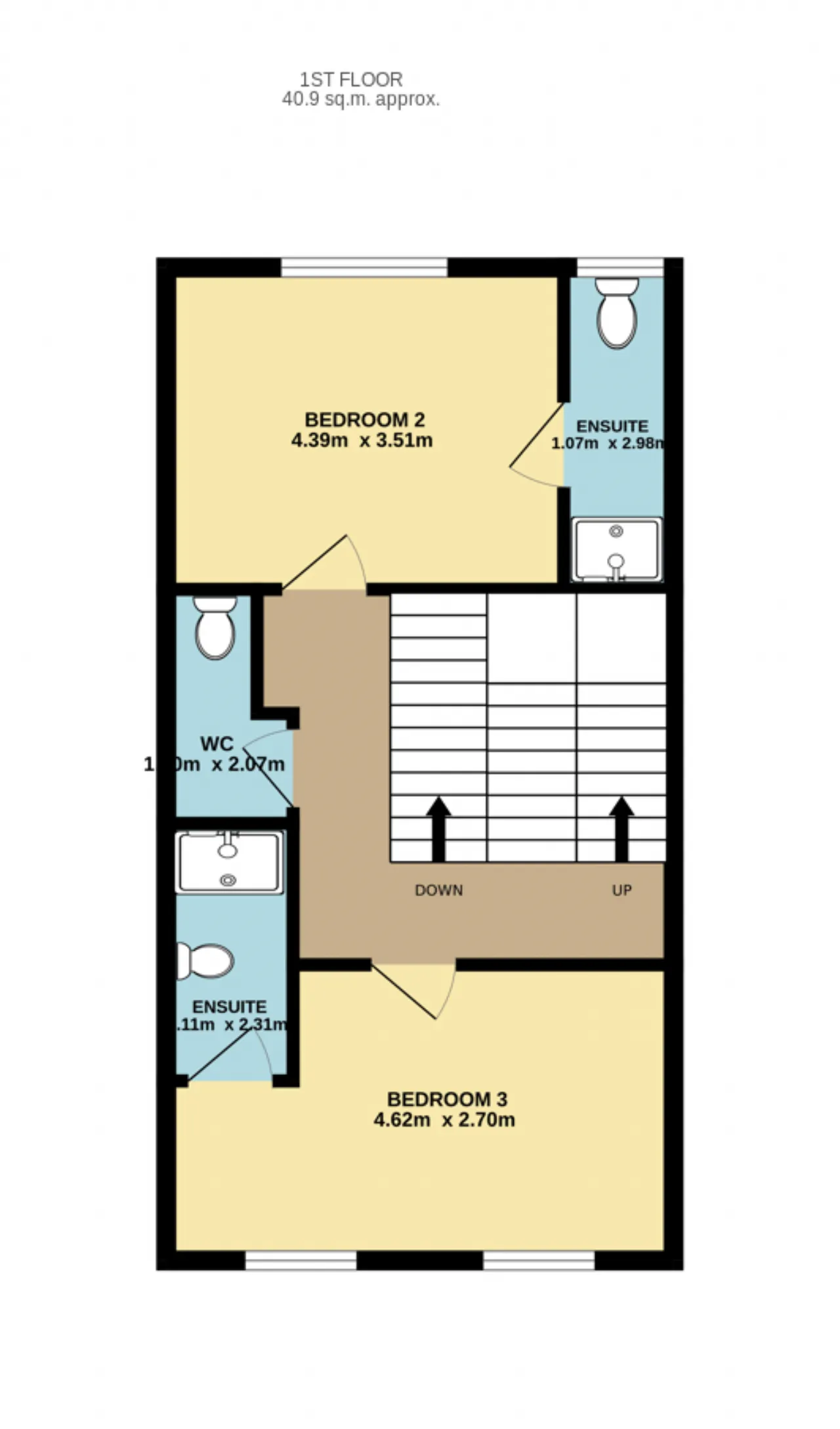 Bedroom 1 4.62m x 2.70m Spacious double bedroom overlooking the front of the home. The bedroom consists of carpet flooring and en-suite.