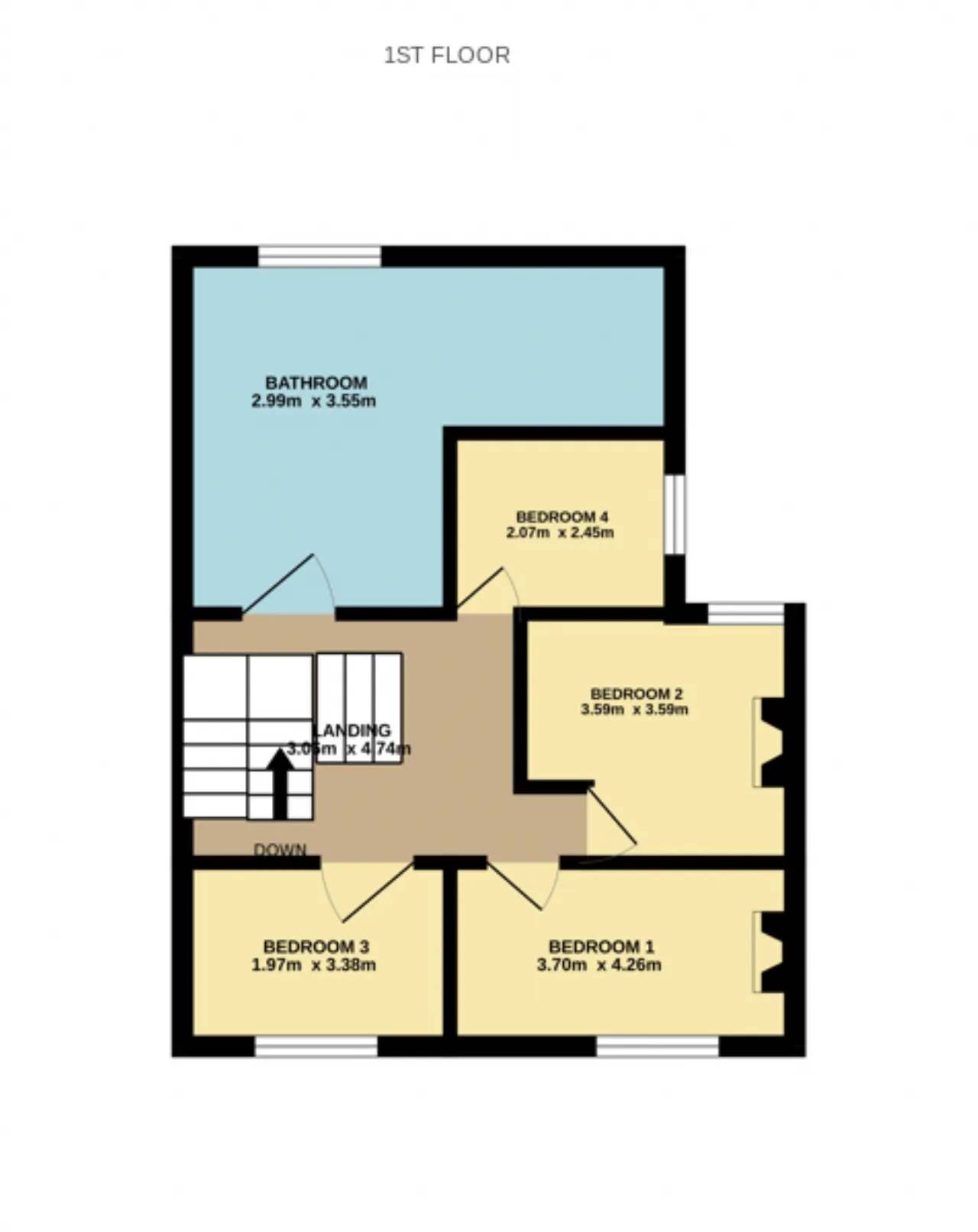 First Floor Landing 3.06m x 4.74m The landing opens to all bedrooms and the family bathroom.