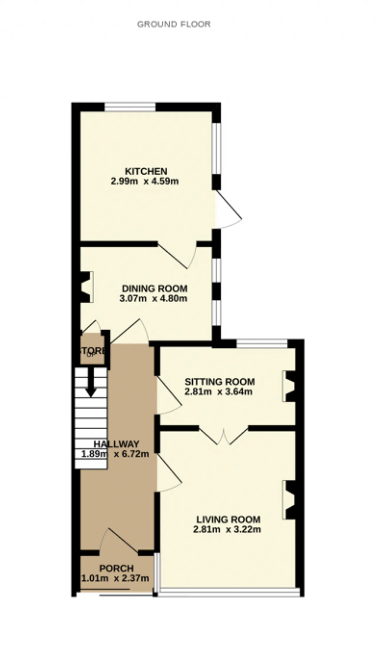 Sitting Room 2.81m x 3.64m Fully carpeted sitting room which has an original open fireplace and overlooks the west facing rear garden.