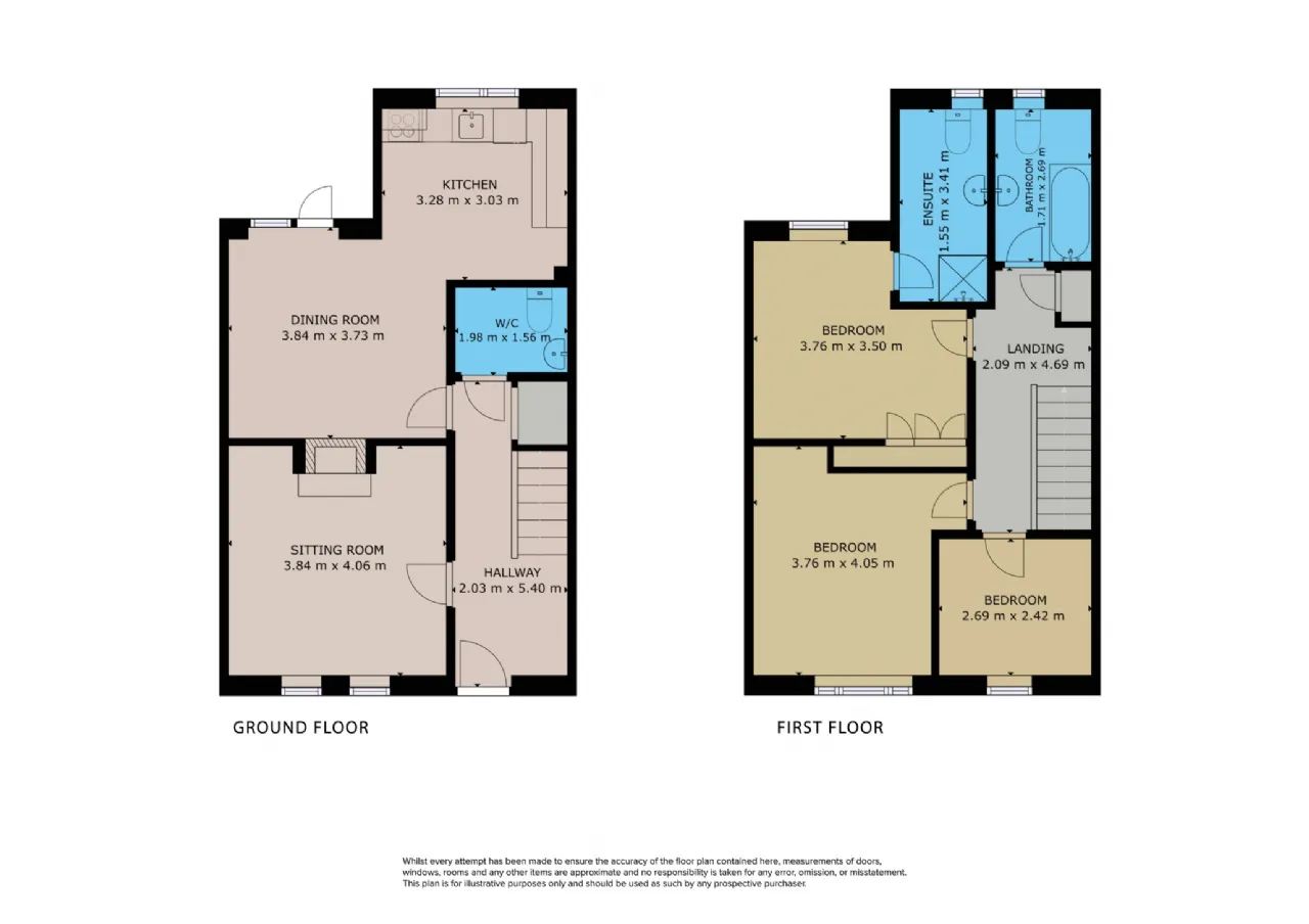 This property comprises approximately 104 sq.m. (1,119 sq.ft.) of accommodation and includes entrance hallway, sitting room, open plan kitchen-dining room and guest w.c. on the ground floor. The first floor has 3 bedrooms, one ensuite and a family bathroom.